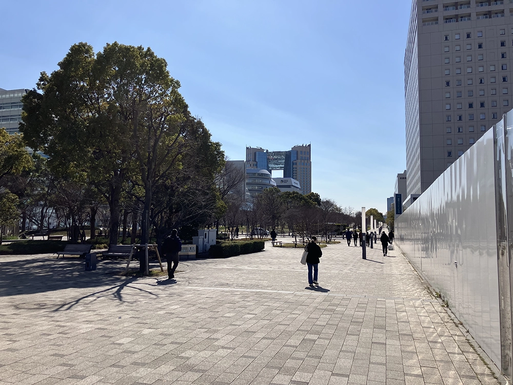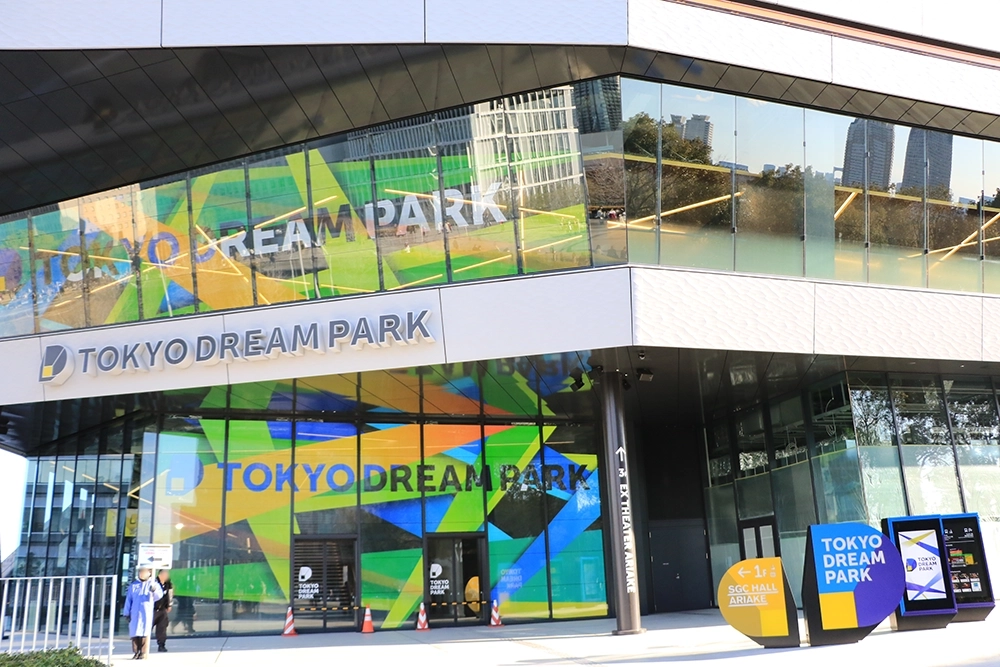 左手に東京ドリームパークが。1階部分にSGCホール有明のエントランスが、反対側の2階部分にEX THEATER ARIAKEのエントランスがあります。