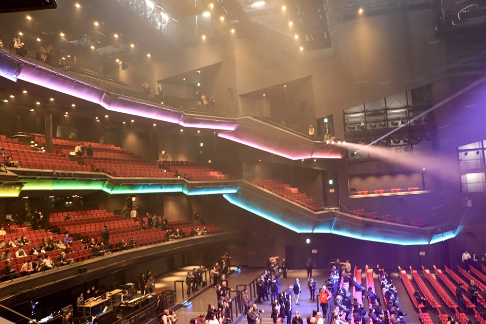 そして。このSGCホール有明の最大の武器は、サウンドシステム。d&b社の「イマーシブオーディオシステム」を採用。客席のどこにいても同じように、いい音を聴くことができるこのシステムは、アーティスト単位でライブに使われたことはあるが、コンサートホール側が常設機材として導入するのは、世界で初めてだという。