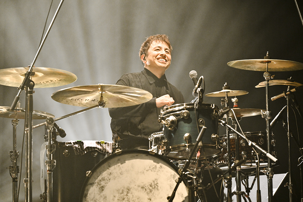 続いてアルバム『DEEPER』の中から「GOLD&TURQUOISE」「Across the Reef」と、ジャズ/フュージョンのエッセンスの濃いメロディアスでグルーヴィーな曲を連ねてじっくり聴かせ、「Waterfilm」の後半から、ダンスビートへチェンジして一気にテンポアップ。ライブの定番曲「エイジアン・ダンサー」から、どちらも数年振りに演奏するという「beyond the beyond」「Flexible」へ、懐かしい曲をたたみかけてぐいぐい盛り上げる。ロックバンドがやるダンスロックとは一味も二味も違う、超絶スキルを駆使したロックとジャズとダンスの激突がとことんスリリング。観客も拍手喝采で大騒ぎだ。
