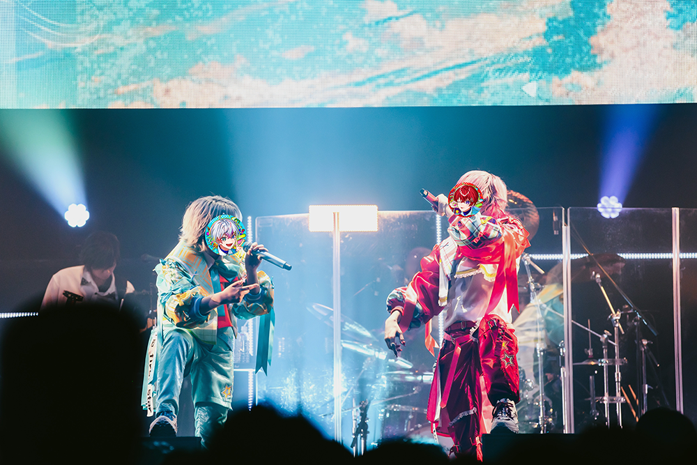 その後はアルバムに収録されている、すたぽら初のペアオリジナル楽曲のセクションへ。くにとCoe.によるロックナンバー「High and Low」は低音ラップとハイトーンボイスが情熱的に響き、Coe.とReluによる爽やかなギターロック「bestie」はハイトーンのハーモニーが夏の日差しのように眩しい。Reluと如月ゆうによるキュートなポップソング「愛鍵」は観客のコールも痛快で、如月ゆうとこったろによるシティポップのテイストが取り入れられた「星を辿って」は歌声から両者の真摯な気持ちが伝わる。こったろとくにによるセクシーなムードが漂う「Shall We Dance?」は歌詞のとおりの“魅惑のステップ”をダンスで見せて会場をときめかせた。