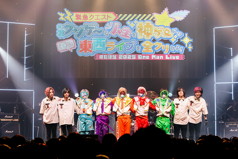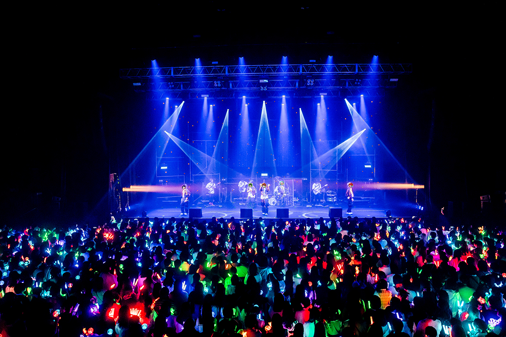 RPGゲーム風のオープニングムービーの後、バックバンドの演奏に乗せてメンバーカラーの衣装をまとった5人が登場。キュートなダンスや8bitサウンドがキャッチーな「俺たち、ハチャメチャゲーマーズ!」、5人のチームワークを感じさせる「世界を救え!へっぽこ勇者のRPG」と“すたぽら×ゲーム”を強く印象づける楽曲でオープニングを飾る。最初のMCパートでは挨拶と自己紹介のあと「昨日に続き今日も超満員」と感謝を告げ、気さくに声を掛けながら観客の興奮をリラックスさせた。