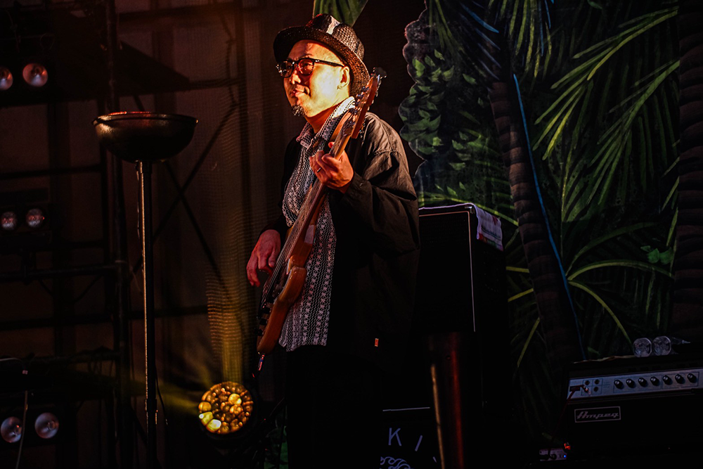 「ムーンライズカーニバル」から「沖縄」「ft.」へ、序盤はバンド初期の代表曲を連ねてぶっ飛ばす。揃いの振り付け、手振り、タオル回しでぐいぐい盛り上げ、世古とkouも前に出てガンガンアピール。ヨシロウのメランコリックなアコースティックギターが光る「sleep talking」をしっとり聴かせたかと思えば、「GO NOW」では二人目のジャイアンのホーン隊とボーカルMASA、さらにドロンズ石本もパーカッションで加わり、無礼講の大騒ぎ。もはやパーティーを超えるカーニバルだ。