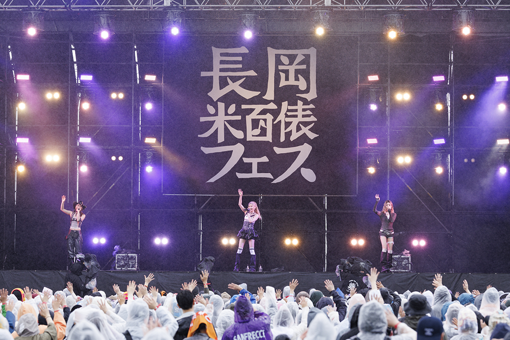 アーティスト登場時に流れるのは、長岡出身の「Creepy Nuts」のDJ松永が提供した和テイストのジングル。10時半にジングルが流れると、ハーフの歌姫・輝叶がダンサー2人を従えてステージの中央に姿を見せた。セクシーなダンスと歌でわかせた「Bon Voyage」では、ツインテールを揺らしながら、パフォーマンス。MCでは「初めまして。今日のながおか米フェス。オープニングアクトを務めさせていただく輝叶と申します」とあいさつ。雨が強くなった空を見つめると「めっちゃ雨降ってる。体調崩さないように」と観客を心配していた。「昨年デビューして1年ぐらいなんですけど、めっちゃあがり症なんです」と抱えている緊張が伝わるようにつっかえながら話すと「みんなで世界をあったかくして、そしたら太陽出てくれるかな…そういうテンションでやっていきたいです」と思いを伝えると、大きな拍手が送られていた。「ちょっとチルっぽい感じで聴いてください」と伝えた2曲目は、ドラマ「フォレスト」のオープニング曲に起用されたバラード「For Love」。「口カラッカラ」と明かしたたどたどしいMCから一変。愛しい思いを、堂々と歌い上げた。再びダンサーを招き入れた最後は、「デビュー曲を歌いたいと思います。聴いてください」と「ICY」を熱唱。オープニングアクトの大役を見事に務め上げた。