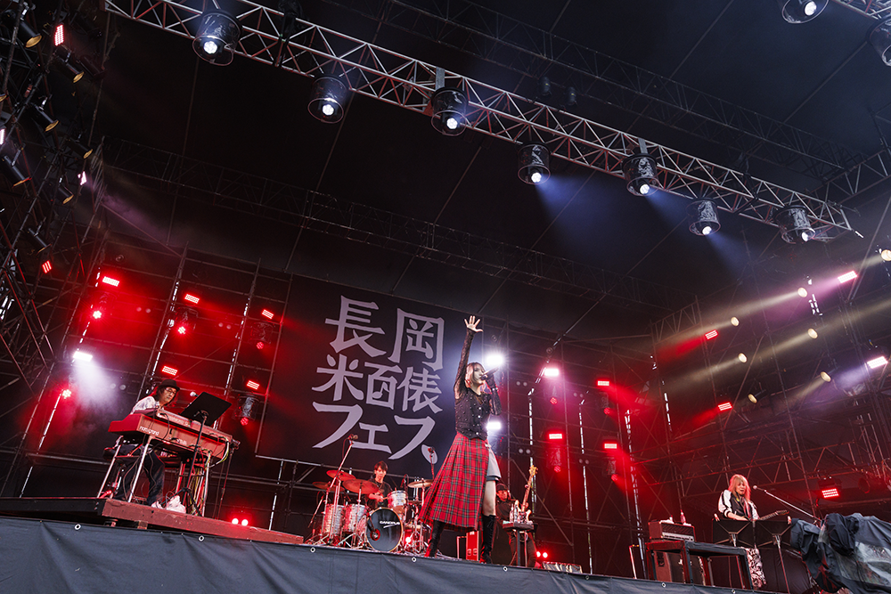 ジングルに合わせて登場したwacciは、ボーカル・ギターの橋口洋平が、中央にスタンバイすると「wacciです。新曲をやります」と第一声。ドキドキと高鳴る鼓動のようなドラムが印象的な「少年」で幕が開けた。和やかな空気に包まれた中、マーチングドラムと鍵盤の優しい音で始まった代表曲「恋だろ」では、聴き手がそれぞれの恋愛経験を重ねるように口ずさみながら、橋口の温かい歌声に合わせて体を揺らしていた。アウトロでは会場から「素晴らしい!」と声も飛んでいた。高揚感に包まれたオーディエンスに向け「来てくれた皆さん、楽しんでいますか。雨降ってなくないですか? 降ってないね。みんなの日頃の行いです。ありがとう」と笑顔で始まったMCでは「さっき女の子達に『キャー』って言われて、人生で浴びたことがないような『キャー』で、米フェスに何度か出演させていただいてきたから、知っていただける方が増えたのかなって幸せな思いでいたら、後ろにMA55IVE THE RAMPAGEさんがいて僕じゃなかったっていう。恥ずかしい思いをしました」と苦笑い。メンバーから「キャーって言ってあげてください」とフォローされると、「そうじゃなくて、めちゃくちゃかっこよかったから、だからバトンをつないでいきたいっていう」と「たくさんの出会いをつなげてくれた曲」とこちらも多くの支持を集める「別の人の彼女になったよ」を演奏。忘れることが出来ない恋人への思いが、長岡の空に広がっていった。