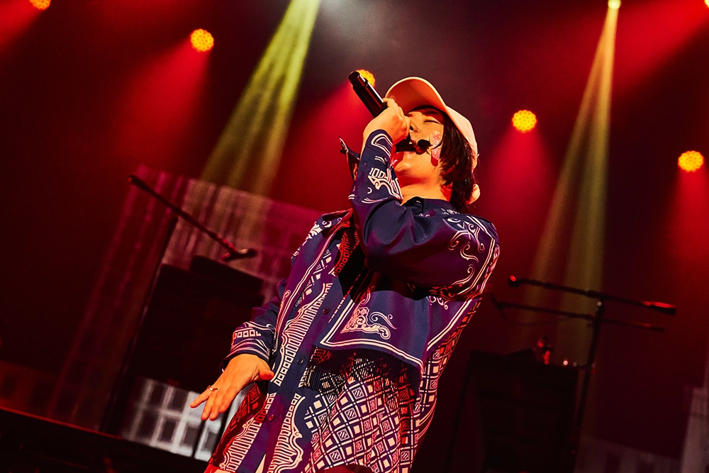 ■というわけで、ベーシストはいない。ベースの音は、基本、バック・トラックで出していたが、本人がベースを弾く曲もあった。間奏でスラップしまくりでソロをキメたりもする。ちなみに、ギターを弾く時は、それまで右利きだったのが2021年の頭から突然左利きになったが(その話をしている当時のインタビューはこちら≫ ビッケブランカが新しい扉を開いた新曲「ポニーテイル」をリリース!初のホール・ツアーを開催!)、ベースを弾くときは右利きである。後で本人に確認したところ、「ベースとアコースティック・ギターは右利き、エレキギターは左利きなんです」。さっぱりわかりません。ほかにいないので、そんな人。