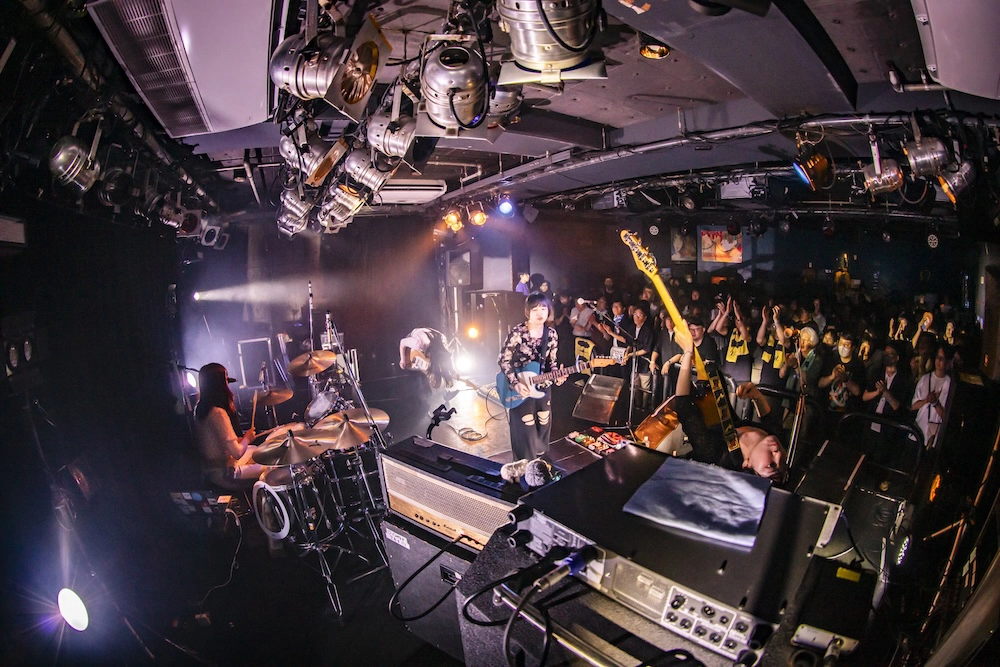 彼女が弦を替えに下がっている間、「初めてのやついフェスティバル、呼んでいただきありがとうございます」と、ベースのカノがつないでいたら、フロアから「アニョハセヨー!」と声が飛んで、「あ、そうなんです」。昨日初めて韓国でライブを行って、帰って来たところだという。フェスに出たそうです。