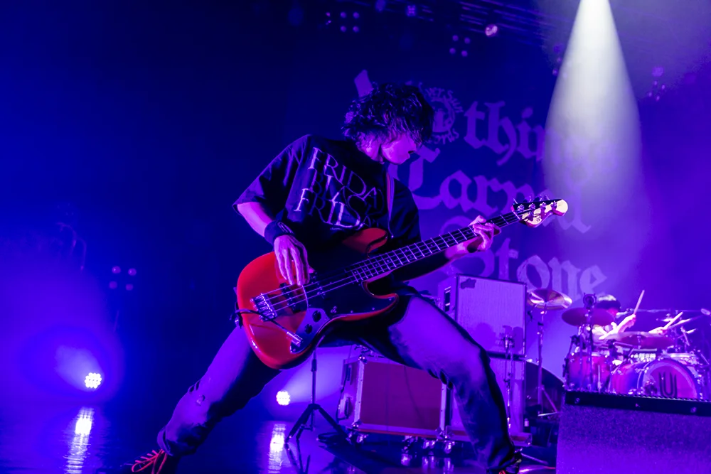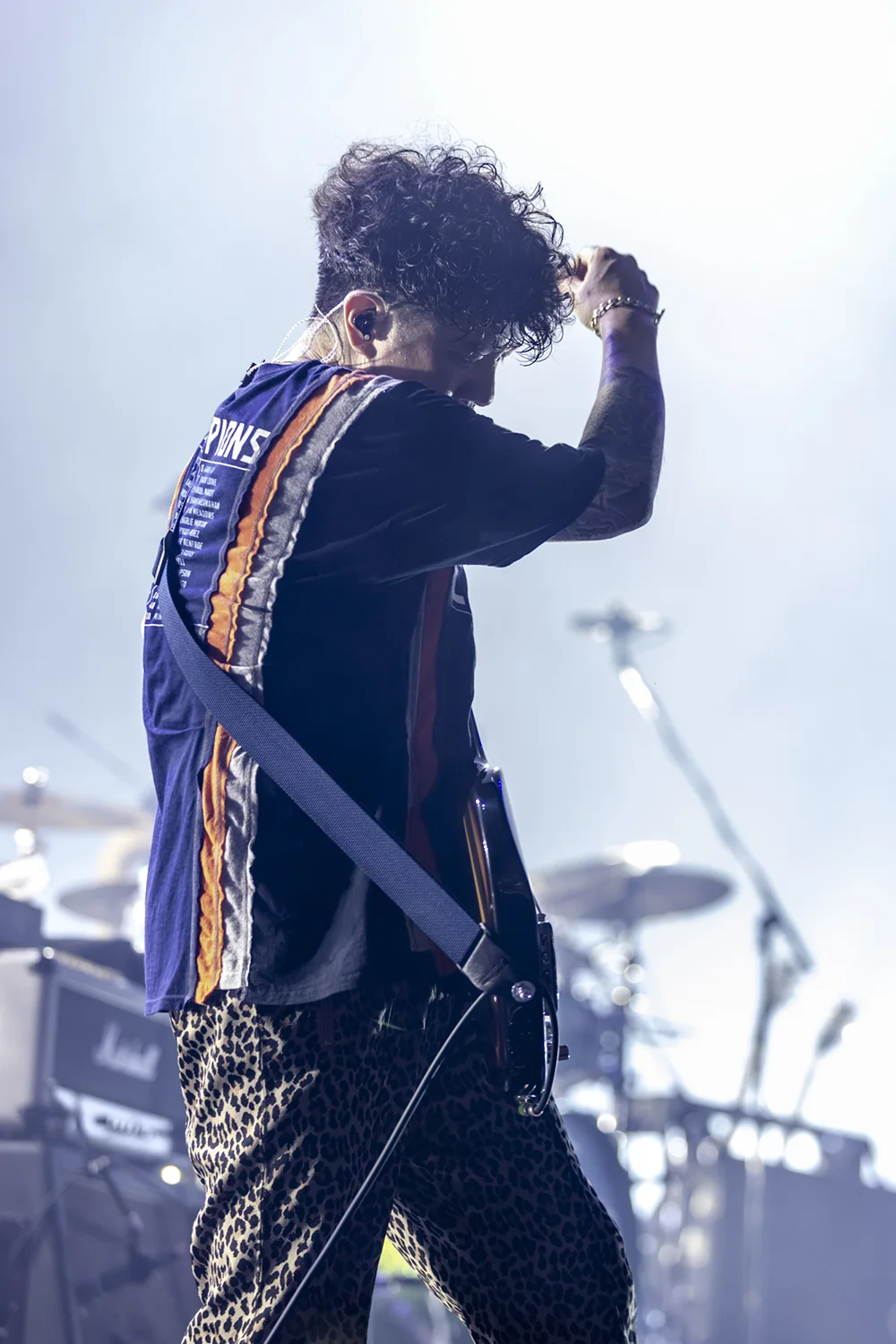 「最高に楽しい、ありがとう」という村松の言葉で後半戦へ、改めて今回の「Hand In Hand Tour」がいいツアーとなったこと、今日もUNISON SQUARE GARDENの力も借りて、初のZepp Hanedaでのライブを行っていることをMCし、「行けるところまで行こうか」と、昨年リリースしたEP『BRIGHTNESS』から「Challengers」へと突入。シンガロングを巻き起こして、続く「Out of Control」で、「騒げ!」と観客を飛び跳ねさせていく。強靭なビートと、ステージの左右へと広がって両端からハイボルテージなフレーズを見舞う生形と日向。ステージ上もフロアも、まさに“Out of Control”な状態で高揚感がぐんぐんと上がっていった。その熱々な会場に響くアンセム「November 15th」は格別だ。そしてラストに演奏したのは、本ツアー直前にリリースとなった新曲「May」。Nothing’s Carved In Stoneの曲としては、歌心をまっすぐに引き立てるシンプルな曲だが、改めてこうしてライブで演奏される「May」は、シンプルさの中にも力強さや重厚感があって、歌やそこにある言葉を抒情的に、また情緒的にも聴かせる曲になっている。歌終わりによる余韻も含めて、今日という日を美しく刻みつけるような「May」に、観客は拍手喝采を送った。