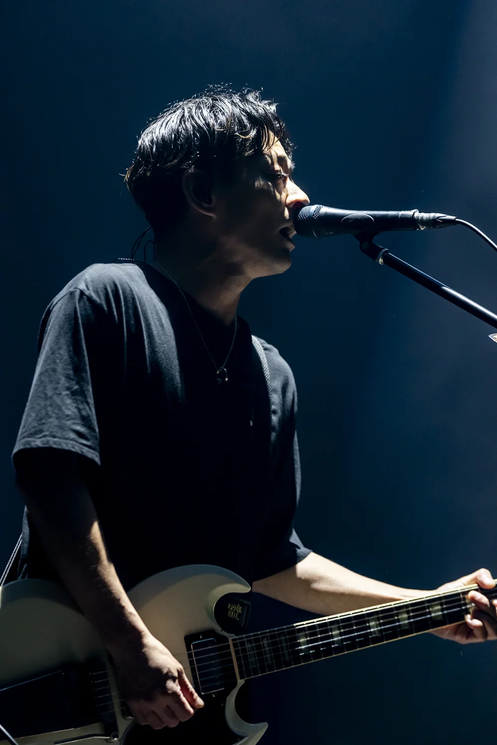 全10バンドとしのぎを削ってきた「Hand In Hand Tour 2025」の締めくくりとなるNothing‘s Carved In Stoneのステージは、鋭く硬質な大喜多崇規(Dr)のよるビートとエフェクティヴな日向秀和(Ba)のベースとが会場を縦横無尽に暴れ回っていく「Freedom」でスタートし、「You’re in Motion」「Spirit Inspiration」へとなだれこんでいく。パワフルに会場を突き抜けていくようなビートや生形真一(Gt)のギターリフ、また大きなコールで応え続ける観客の熱気と明滅するライティングも相待ってなのか、アンサンブルのノリや速度が上がっているような体感もある。UNISON SQUARE GARDENの爆発的な熱量を受け継いでのステージという、ツーマンならではの独特の空気感がもたらすものもあるだろう。「”Hand In Hand Tour 2025“ファイナル、お越しいただきありがとうございます」と挨拶をした村松拓(Vo/Gt)は、「やっぱユニゾン、超かっこいいよね」と3ピースバンドとして完成された良さを改めて語りながら、「4人もかっこいいので」といって、「行こうか、羽田!」と「Isolation」で観客のコールを大きくしていく。各フレーズがモザイク的に緻密に絡んでいくアンサンブルで聴かせるこの曲から、おおらかな歌を会場に響かせながら一方で細やかなタッチのギターフレーズと変則的なビートとでポリリズムを生み出していく「(as if it's) A Warning」へと続く、この色鮮やかで多面的なサウンドはNothing’s Carved In Stoneならではのものだ。その真骨頂は「Milestone」だろう。いいツアーを重ねてきた勢いものっているのか、バンドのグルーヴは濃密で、うねりを帯びたサウンドが観客の体をガッチリと捕らえて揺さぶる。もはや麻痺しているところもあるが、彼らのステージもまた音量がデカ目。そこにバンドの気迫もプラスされている。