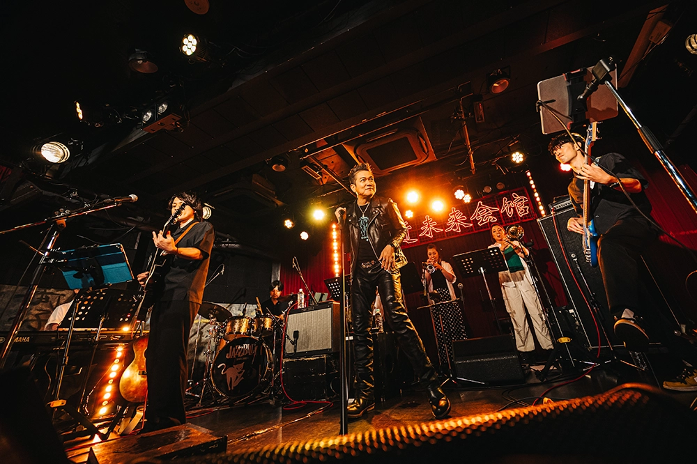 2025年の夏もまた、渋谷でJAZZBILLYを観られる喜びを噛みしめよう。上澤津孝を、MAGICを、ロカビリーを、ロッカ・スウィングをこよなく愛するファンで、渋谷近未来会館のフロアは埋まった。しかも今年はおよそ4年ぶりに最強女性ブラスセクションが参加、その名も“KUNOICHIリターンズ”と題した特別な一夜だ。盛り上がる要素はすべて揃った。