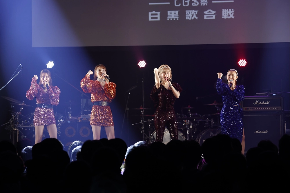 続いてsis/Tが登場。「悲しみが止まらない」(杏里)、「め組の人」(RATS&STAR)など、昨今若い世代にも人気の昭和の名曲を華麗なハーモニーで歌い上げていく。昨年はデビュー前であり、初出場で緊張気味だったsis/Tだが、今年は堂々としたパフォーマンスで存在感を発揮。ラストは彼女達の持ち歌「DING DONGください」「愛のバッテリー」をメドレーで披露。どこか懐かしいメロディーのダンサブルな楽曲で場内を盛り上げた。