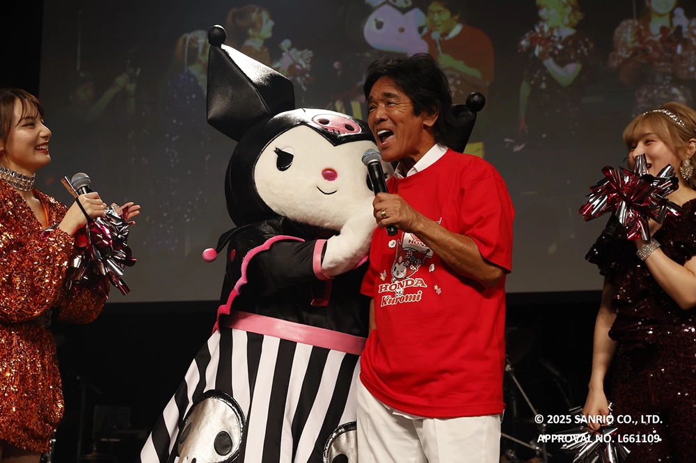 さて、インターバルでは何とサンリオキャラクターのクロミちゃんが松崎とsis/Tにエスコートされてステージに登場。クロミちゃんとHONDAのコラボで黒いバイクが作られたということだが、クロミ=黒フェス! クロミちゃんはまさに黒フェスにピッタリのゲストだったことが判明。こういうまさかのコラボも黒フェスらしいところだ。