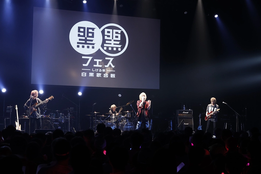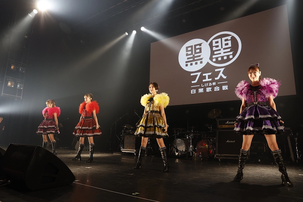 日本が誇るレジェンドシンガー、松崎しげるが毎年9月6日(彼の色黒にかけて96=クロの日)に主催している“黒フェス-しげる祭-白黒歌合戦”。毎回、幅広い出演者が話題だが、今年も粒ぞろいのメンバーを集め、豊洲PITで行われた。まず、親分の松崎しげるをはじめ、黒フェスに皆勤賞出演を続けるももいろクローバーZ、キャリアと実力を兼ね備えた重鎮、加藤登紀子、これまでソロとして参加してきた手越祐也率いるロックバンド、T.N.T、パワフルな歌声が持ち味のロックシンガー、大友康平(HOUND DOG)、50歳でチャレンジしたオーディション番組『トロット・ガールズ・ジャパン』でファイナリストとして認知度を高めた実力派、歌心りえ、クセの強いアイドルを排出しているWACK所属のアグレッシヴなアイドルグループ、ASP、歌心りえ同様、『トロット・ガールズ・ジャパン』に参加したメンバーで構成されたsis/T、HONDAとコラボしたサンリオキャラクターのKuromi、マジシャンのGO、そしてオープニングアクトにはビジュアル系演歌歌手の花見桜こうき……と、今年もユニークな面々である。