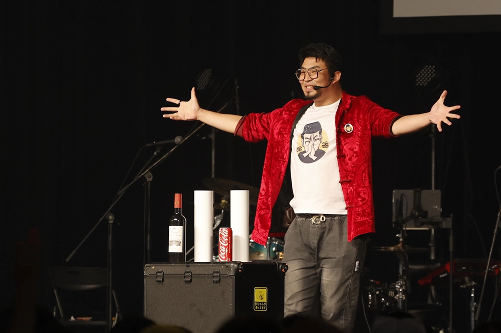 ももクロの熱いパフォーマンスのあと、マジシャンGOが登場。大トリの松崎の出番を前に、華麗なマジックで会場の空気を整える。その衝撃の内容はなかなかのインパクトだった。マジシャンGOは「僕はももクロの前なんですか?」と焦ったそうだが、松崎は敢えて順番を変えなかったとか(苦笑)。それでも適当にスマホの電卓に入れた数字が足し算でなぜか本日の日付になるなど、タネがわからない謎のマジックで楽しませてくれた。