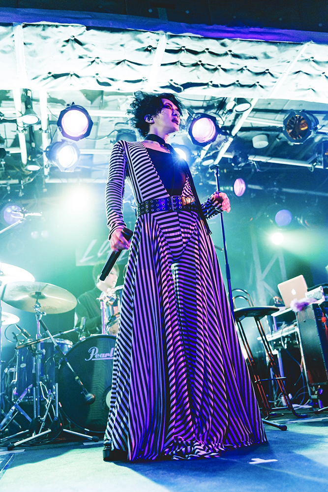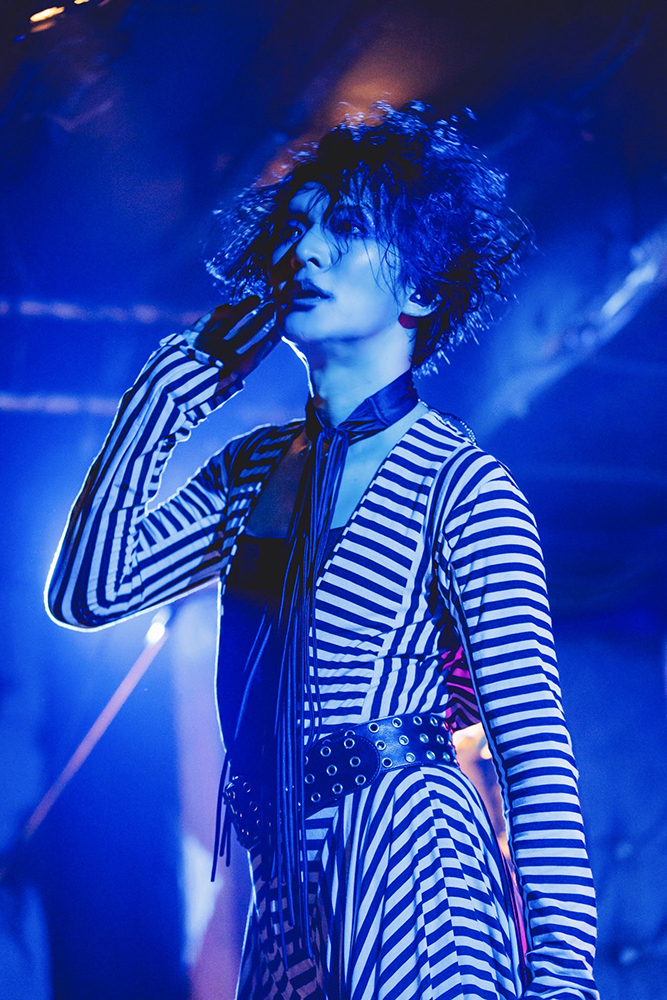 ……と、考案者に対してそれぞれが〈らしい〉言葉をかけると、「ロフト行くぞ!」という桜井のシャウトで本編は最終パートへ。ユニゾンをキメまくる楽器隊のソリッドなアンサンブルと麗しいアンビエンスが交錯する“ダ・ダン・ディ・ダン・ダン”、スピード感あふれるハード・ロック・チューン“裂け目の眼”、観客のクラップとシンガロングも交えた一体感がたまらないcali≠gari屈指のポップソング“龍動輪舞曲”、柔和に繰り返される「ラストダンス」というフレーズが染み入るような寂寥感を連れてくる“ラストダンス”と立て続け、最後は〈青の果て〉という言葉で桜井がバンド人生を振り返った“いつか花は咲くだろう”を会場全体で大合唱してフィナーレ。晴れやかな感傷を残してメンバーは退場した。