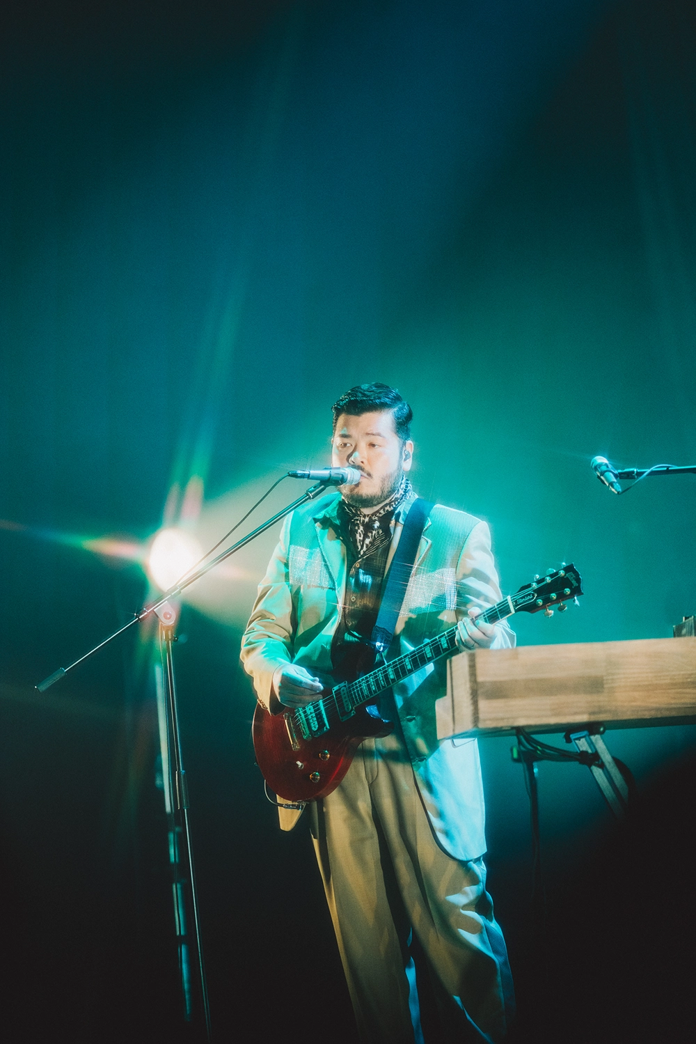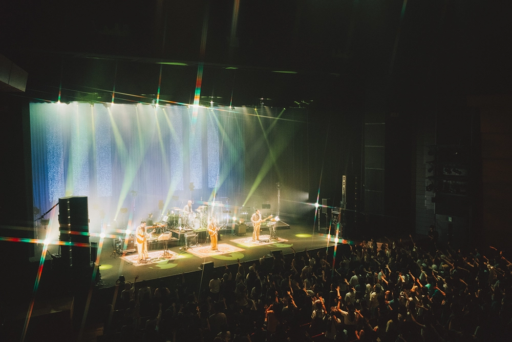アル・グリーンやエラ・フィッツジェラルドの名曲がホールをクラシカルなソウルのコンサートのイメージに染める中、暗転。メンバーに加え、サポートキーボードの山本健太、ホーン隊の3人・村上大輔(Sax)、chankeng(Tp)、NAPPI(Tb)が登場し、ホーンが際立つセッションからスタートする。そこにHIROSHI(Vo/Gt)が現れ、WATARU(Gt/Key)の特徴的な「Breathin’」のイントロが鳴らされる。冒頭からこの曲にどうホーンを?という疑問はコーラス部分を高らかに鳴らす三管の豊かなアレンジが吹き飛ばした。厚みと抜けの良さを兼ね備えたアンサンブルにフロアは大歓喜。続く「By Your Side」も晴れやかなホーンセクションが曲のイメージを広げ、グッとパワフルになった「Don't Be Someone Else」もこのアンサンブルがさらにオーディエンスのクラップを後押しする。テンポが速いナンバーではないが、この冒頭3曲の畳み掛けで早くも最初のクライマックスを迎えた感じだ。