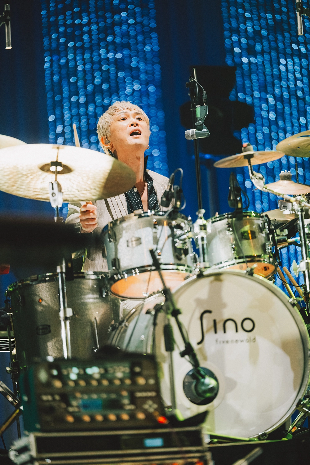 逆にホーン隊がいないナンバーをどう選曲し、どんな流れで構築するかもこの日の見どころのひとつで、続くブロックはFiNOのギターバンドのアイデンティティを窺わせた。HIROSHIのギターストロークの弾き語りから始まった「Summertime」はUKロック的なバンドアンサンブルや輝度の高いWATARUのアルペジオに青春という人生の夏の季節を想起。イントロのSEで悲鳴が上がった「Fast Car」はシンセも加わった80sバンドの趣きもありつつ、SHUN(Ba)の生のベースラインもダイレクトに響く。さらに4人+鍵盤のアレンジとしてはチャレンジングな「One By One」。オートチューンのボーカル、シンセベース、打ち込みとHAYATO(Dr)の生ドラムのミックスがバンドの表現力を拡張。これも逆にバンドだからこそできる演奏だ。ここの3曲がアニバーサリーライブの意義を強めたのは間違いない。