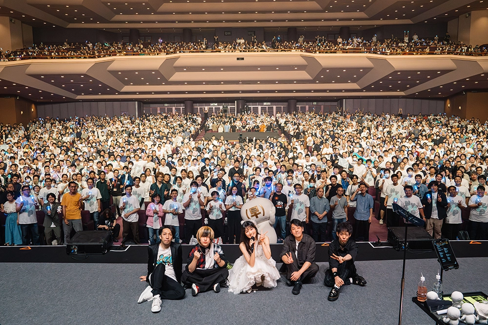 これまでのジャケットやアーティスト写真、ライブ映像などをまとめたメモリアルビデオに続いて、画面に映っていたグッズの1つである“10thゴールド(早)ぬい”がスクリーンから飛び出し、着ぐるみとなって会場に登場。観客とコール&レスポンスを繰り広げたあと、「僕らのアンサー」からはホールがライブハウスへと化した。「透明シンガー」「残滓」と激しく攻撃的なバンドサウンドで観客の高揚感を一気に上昇させると、スクリーンに雨が映し出される中で、エレキギターの効いたロックバラード「レイン」で止まない雨を体現。そして、「未来に読むときに、昔の自分を思い出しながら背中を押して欲しいなっていう気持ちで作りました」という言葉の後に披露されたライブ用曲「Memory」は、ピアノと歌だけで始まるバラードだが、過去の不安や傷を受け入れ、悩みや葛藤も抱えたうえで“ここで生きていく”という未来への決意を込めてるように感じた。