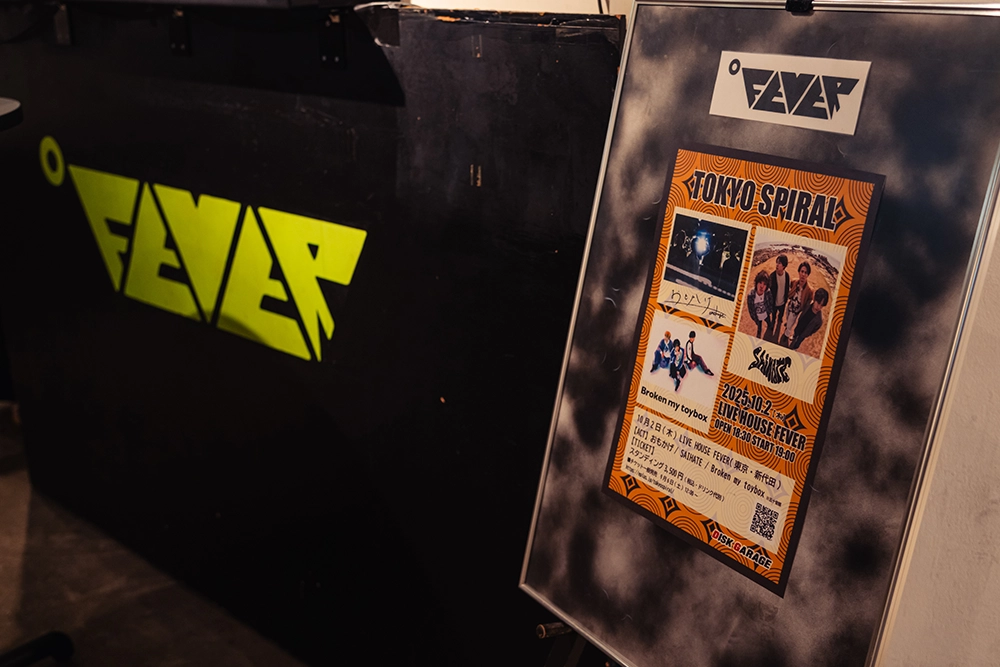 昨年の7月以来の開催となる『TOKYO SPIRAL』。おもかげ、SAIHATE、Broken my toyboxと、今回もライブハウスシーンを賑わす新進気鋭のバンドが3組出演。会場は若手バンドの登竜門的存在となっている、ライブハウス・新代田FEVER。お目当てのバンドの出演を心待ちにしたり、初めて観るバンドに期待を抱いたりと様々な想いが渦巻く、開演前のフロア。ちなみに筆者は初めて観るバンドばかりだけど、初回開催時にすごく楽しかったという『TOKYO SPIRAL』への信頼があるので。今回も新しい出会いやそこに渦巻くスパイラルに期待しかない!