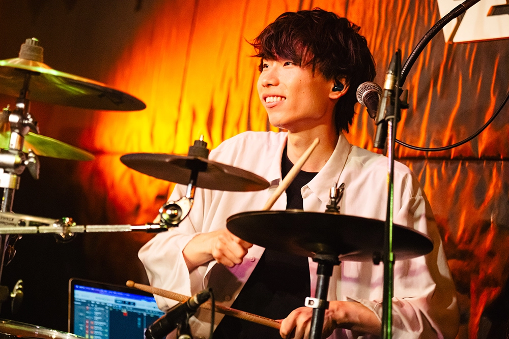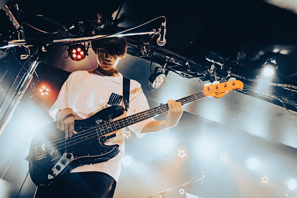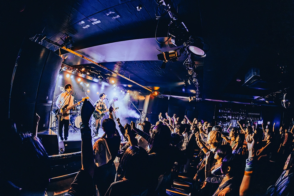 間髪入れずに鳴らす左近航介(Dr)の軽快なビート、えいと(Gt)の胸躍るギタープレイで魅せたインストから、「あなたの好きなように乗ってください」と呼びかけて始まった曲は「ミライ」。その巧みなライブ運びと高い演奏力に魅了されていると、「全員飛べるかい? ジャンプ!」の掛け声に会場中がジャンプを合わせ、早くも会場に一体感が生まれる。