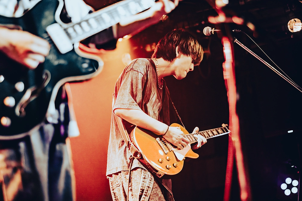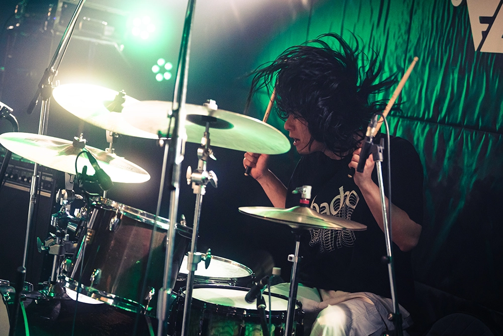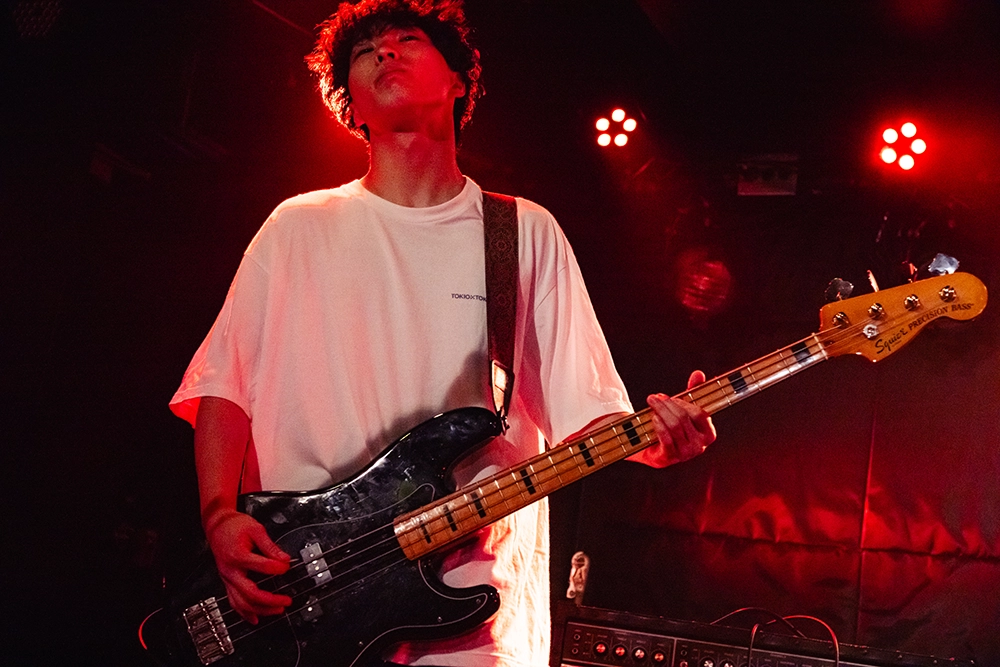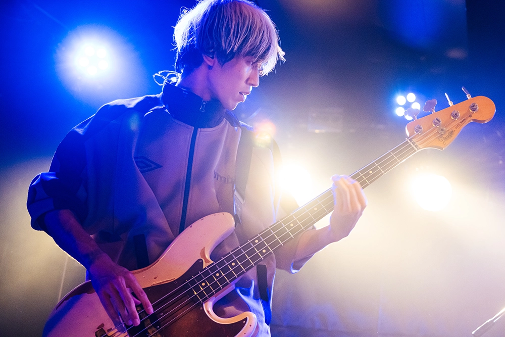 続いて、「このまま行きますけど着いてこれますか?」と初めて観る人も手を取るようにリードして、「レッドオーシャン」へ。高田健太郎(Gt)のアグレッシブなギタープレイやグルーヴの要となる郷間直人(Ba)のベースサウンドも存在感を示すこの曲。アッパーな曲調に体を揺らすオーディエンスが、拳を上げて掛け声を合わせて。会場に強い一体感が生まれたところでMCへ。