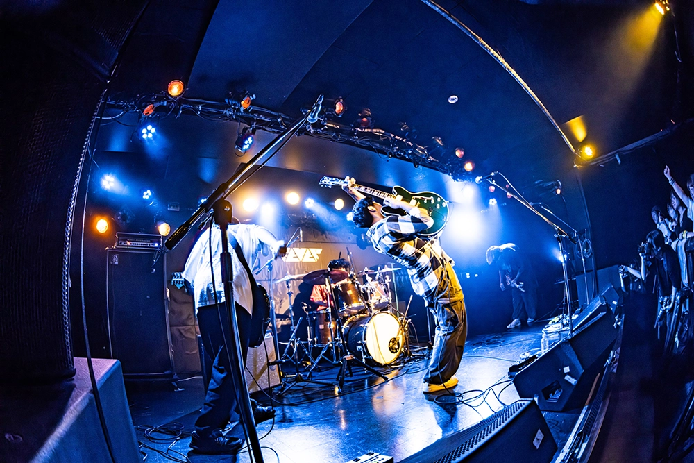 家の近くに出来た牛丼屋の牛丼が衝撃的に美味いという、健太郎の興味深い話題で始まったMCでは、いろんな店で提供される牛丼をバンドに例えて。「たくさんあるバンドの中から、こんなに好きになってくれるって素敵だなと思って。みなさんにとってそういう存在でありたいと思います」と話し、オーディエンスから笑いと拍手が起きる。「憧れの地だった」と語る、新代田FEVERに初出演した喜びを語り後半戦へ。