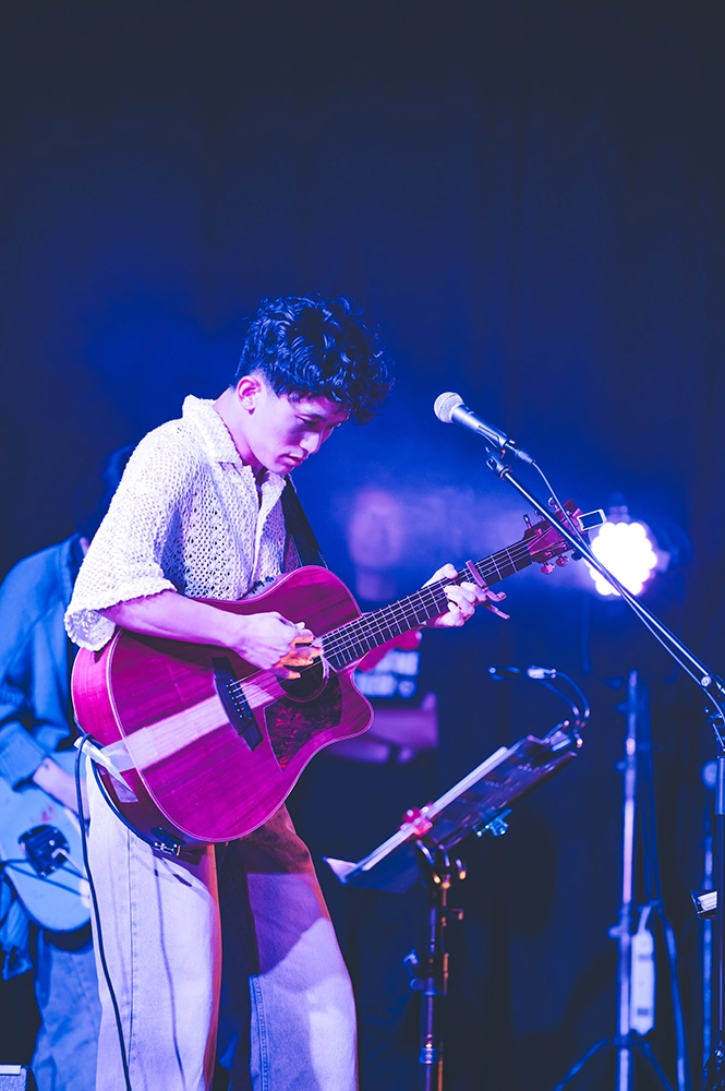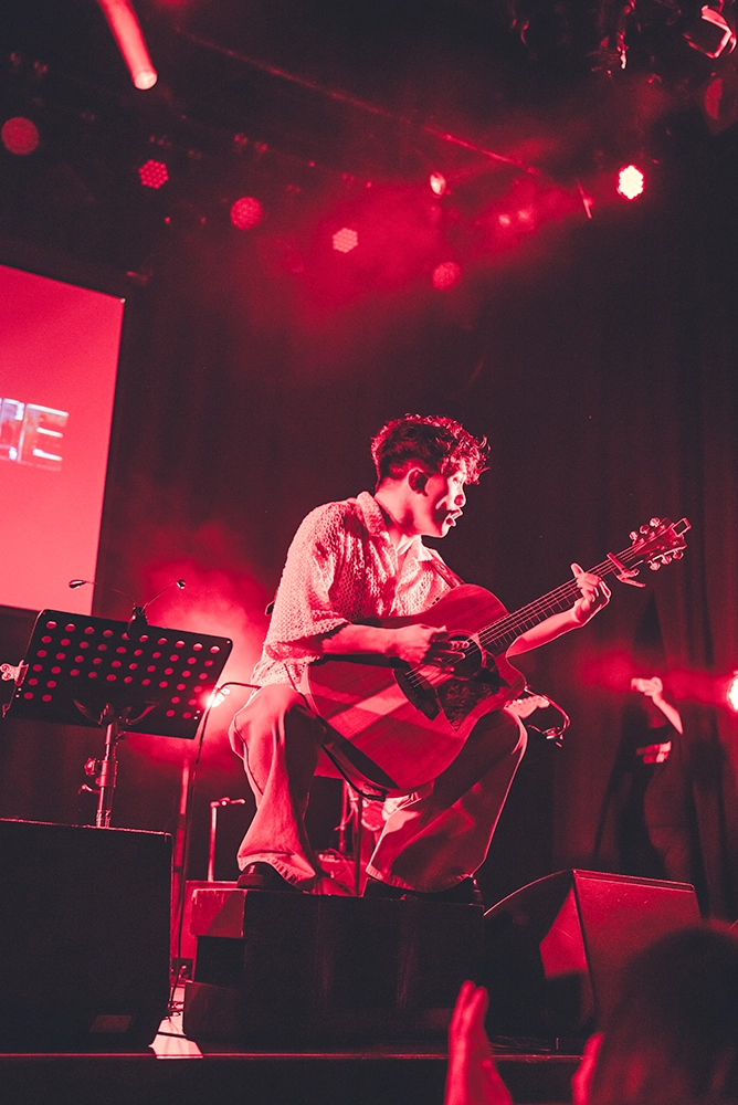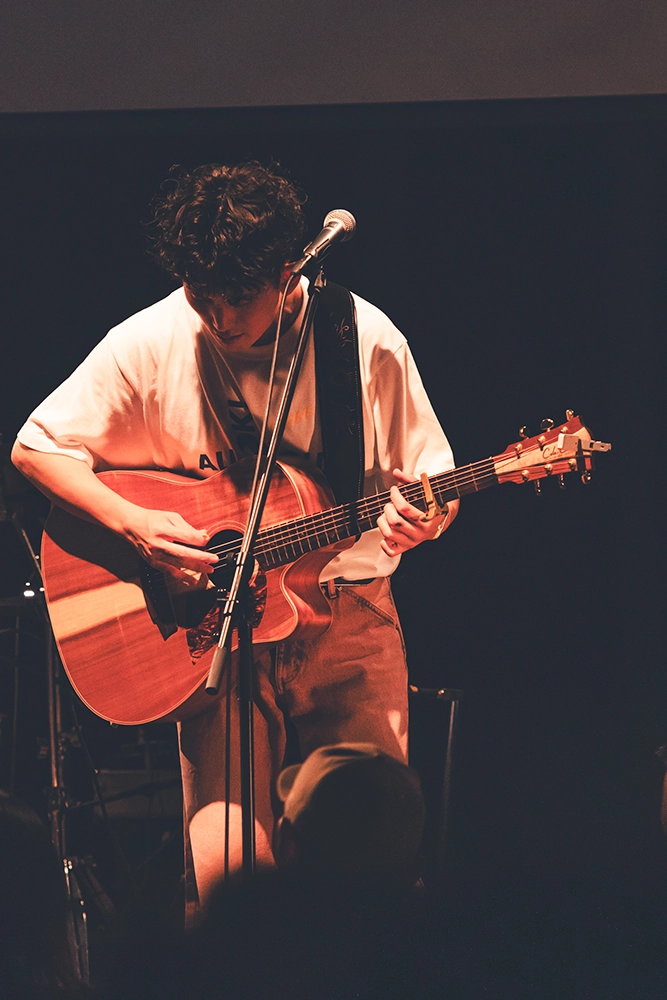 「いろいろあるけれど、やっていきましょう」というEMILYの言葉に続いてのアンコール最後の曲は「2025」、10月22日リリースの新曲だ。この曲はHONEBONEの2人のみでの演奏となった。KAWAGUCHIのギターのカッティングとEMILYの語りで始まり。HONEBONEの2人の率直な思いが真っ直ぐ届いてきた。デビュー11年目の彼らの新しい始まりの歌、そして、何度も挫折してきた彼らだからこそ発することのできる不屈の歌だ。