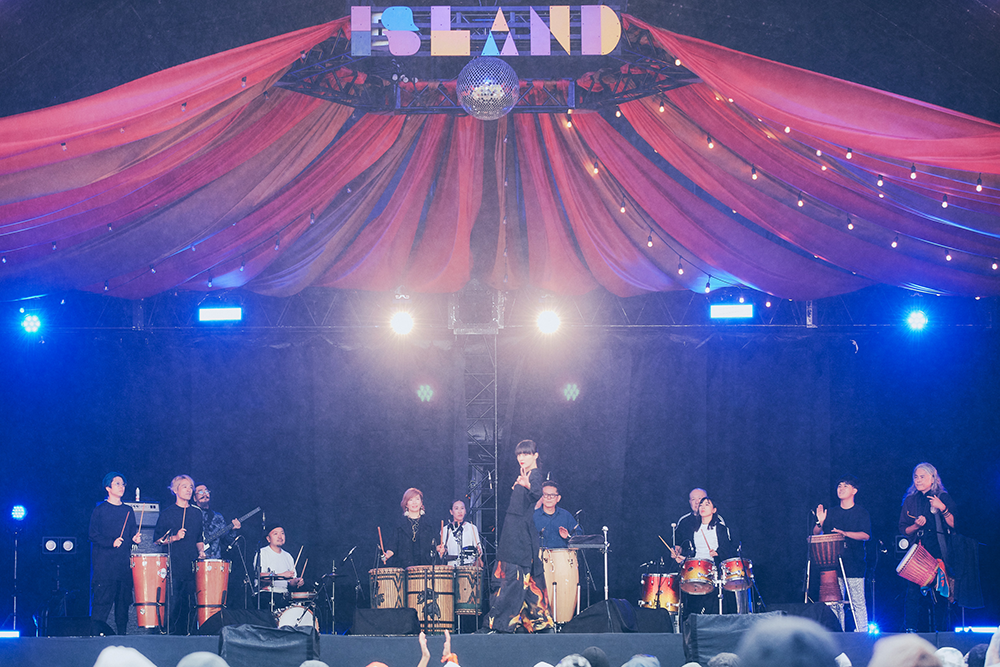 毎年出演している「コンダクターのシシド・カフカとベース(ケイタイモ)以外は、全員ドラムかパーカッションの即興演奏集団」=シシド・カフカ directs el tempo、今回はISLAND STAGEの三番手(14:20〜)に登場。