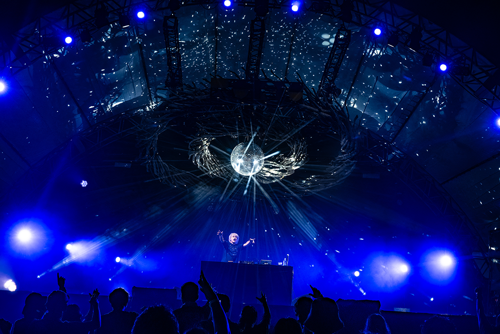 そのあとはピエール中野による、クロージングDJタイム。「音楽花火」を受け継いでサカナクションの「アイデンティティ」で始まり、BUMP OF CHICKENの「天体観測」やELLEGARDENの「ジターバグ」等を経て、FACTの「a fact of life」で終わる10曲でオーディエンスを踊り狂わせ、初日を締めくくった。