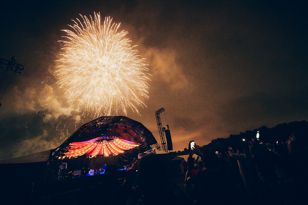 サカナクションの「怪獣」に合わせて、4分13秒の間、楽曲にシンクロした、色とりどりの花火が打ち上げられた。