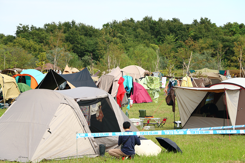 と、最後まで観終えたあとは、テントエリアでソロキャンプ。そのエリアの中で、ぬかるんでいるところはテープで囲われて入れないようにしてあったりして、この天候でも快適に泊まってほしい、という配慮が見受けられる。