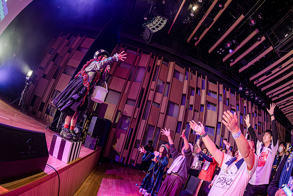 MCでファンと会話をしながら和気あいあいとした空気を作ると、「学校に行けなくなったときの歌」と前置きをして「せんせい、あのね。」を歌い出す。当時の自分を憑依させるように、幼さと切なさを感じさせる声で歌詞に綴られた心情を生々しく彩った。