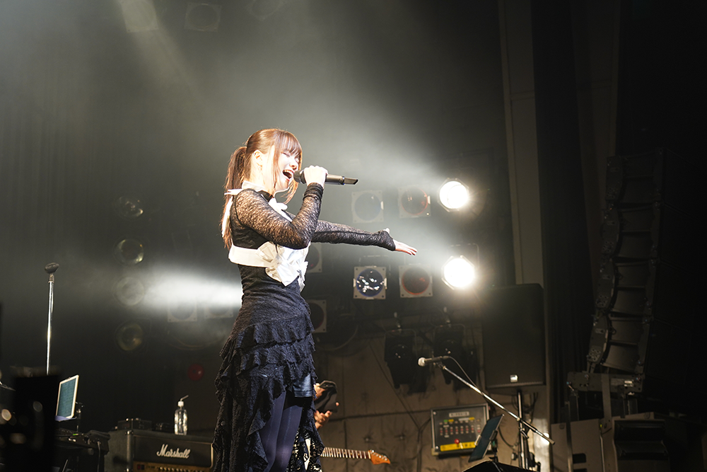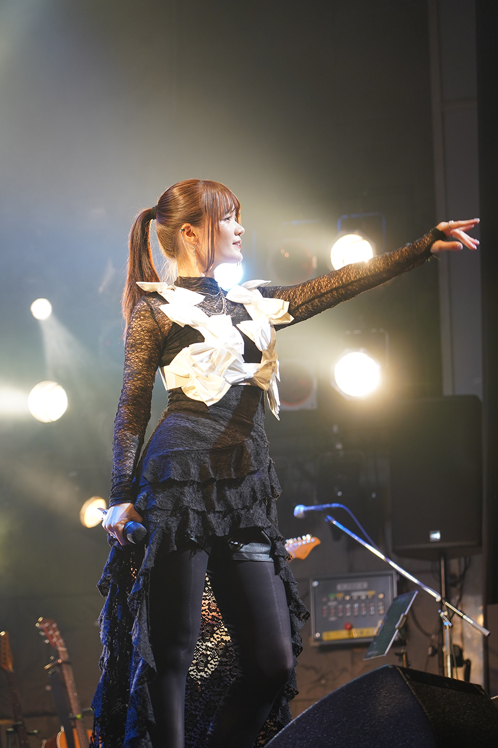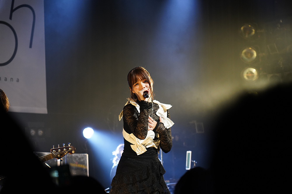 黒を基調とした衣装に身を包んだsanaは、バンドメンバーとともに冒頭から「修羅に堕として」「つもり」「Parole」と新旧のロックナンバーを立て続けに届ける。楽曲の世界をより生々しく表現した激情的な歌唱と美しい所作は、ひりついた演奏との相性もいい。「メーテルリンク」ではクラップを促すと観客もそれに応え、力強く爽やかな空間が生まれた。