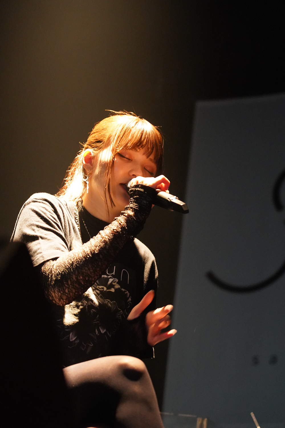 前回のツアーファイナルも同じくO-WESTだったと述懐するsanaは、ツアータイトルの由来に触れる。そして「自分が不器用であることにずっと悩んできたけれど、いろんな人からあたたかい声をいただけるようになった」「不器用ながらも自分らしく突き進んでこれて良かった」「この先もどんどん展開していきたいと思います。そんな前に進んでいく覚悟を見せられるツアーにしたいです」と健やかな笑みを浮かべると、観客からは大きな歓声が沸いた。