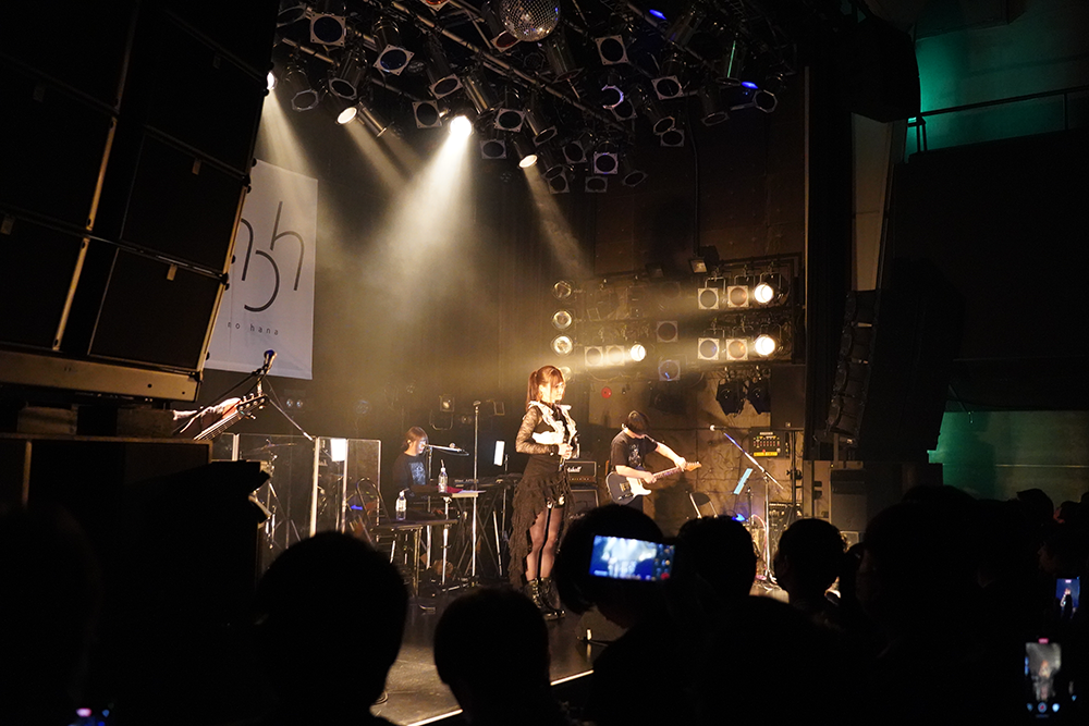 sanaが歌詞を提供した「SHINE BRIGHT REVOLUTION」で会場を盛り上げて岬がステージを後にし、再びピンボーカルとなったsanaは「まだまだ暴れ足りないんじゃないですか!?」と観客を煽り「淡く微か」「ニューサンス」「THE IOLITE」とバラエティに富んだロックナンバーでさらにギアを上げていく。勢いは止まることなく「99.9」「1」でさらに熱量を高め、途中テンションが上がったsanaが齋藤にアイコンタクトを取りに行くシーンも見受けられた。バンドメンバーに対して控えめだった彼女が、それだけライブを楽しめるようになり、音楽を通してメンバーと心を通わせられるようになったのだろう。これも彼女がひたむきにsajou no hanaの活動を続けてきたからこそ作ることができた景色と言っていい。