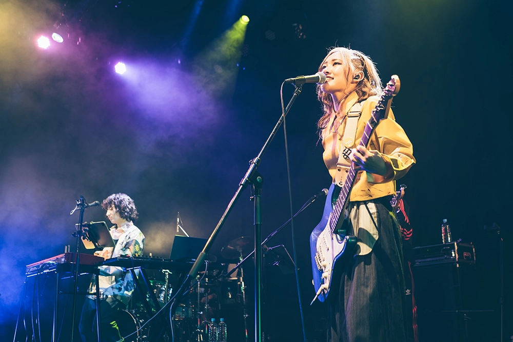 熱い感謝の想いを「空中ブランコ」のポジティブなサウンドに乗せて届けたふたり。きらきらと輝くようなメロディが降り注ぎ、フェイク部分でみゆうが客席にマイクを向けると温かな大合唱が湧いた。そのままラストナンバー「1 UP」に入り、「みんな一緒に歌ってくれるかな?」というみゆうに応えて、オーディエンスがさらに大きな声を返していく。その光景を笑顔で見渡しながら高らかに歌い上げた。