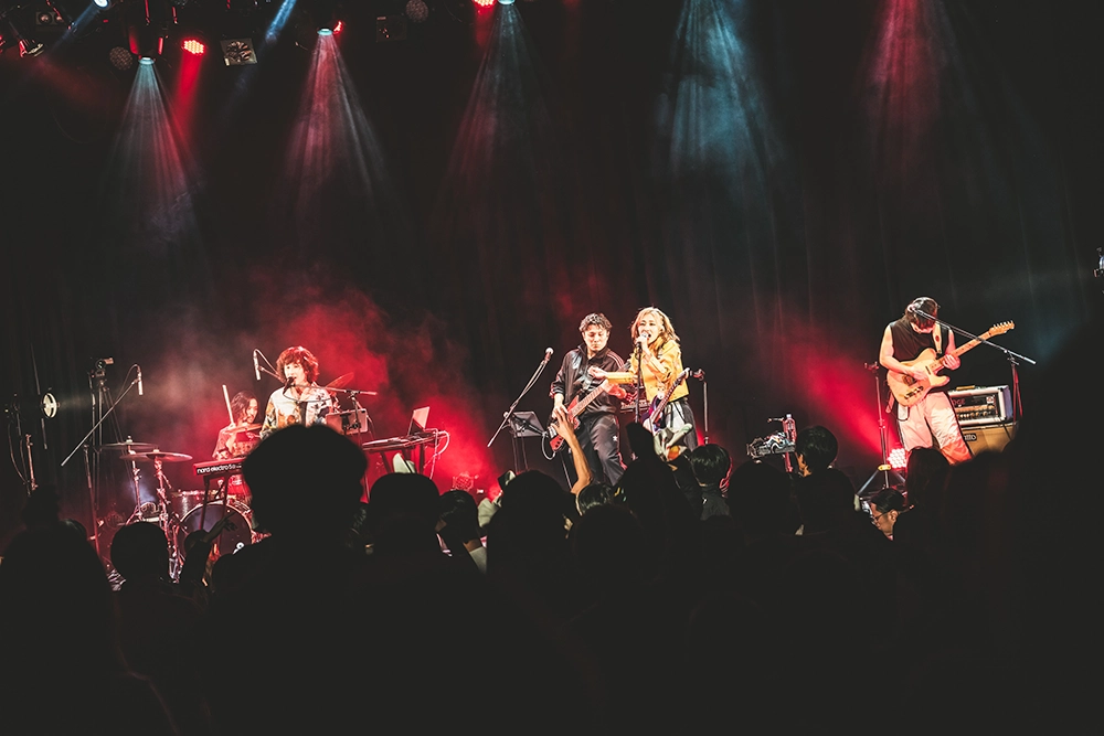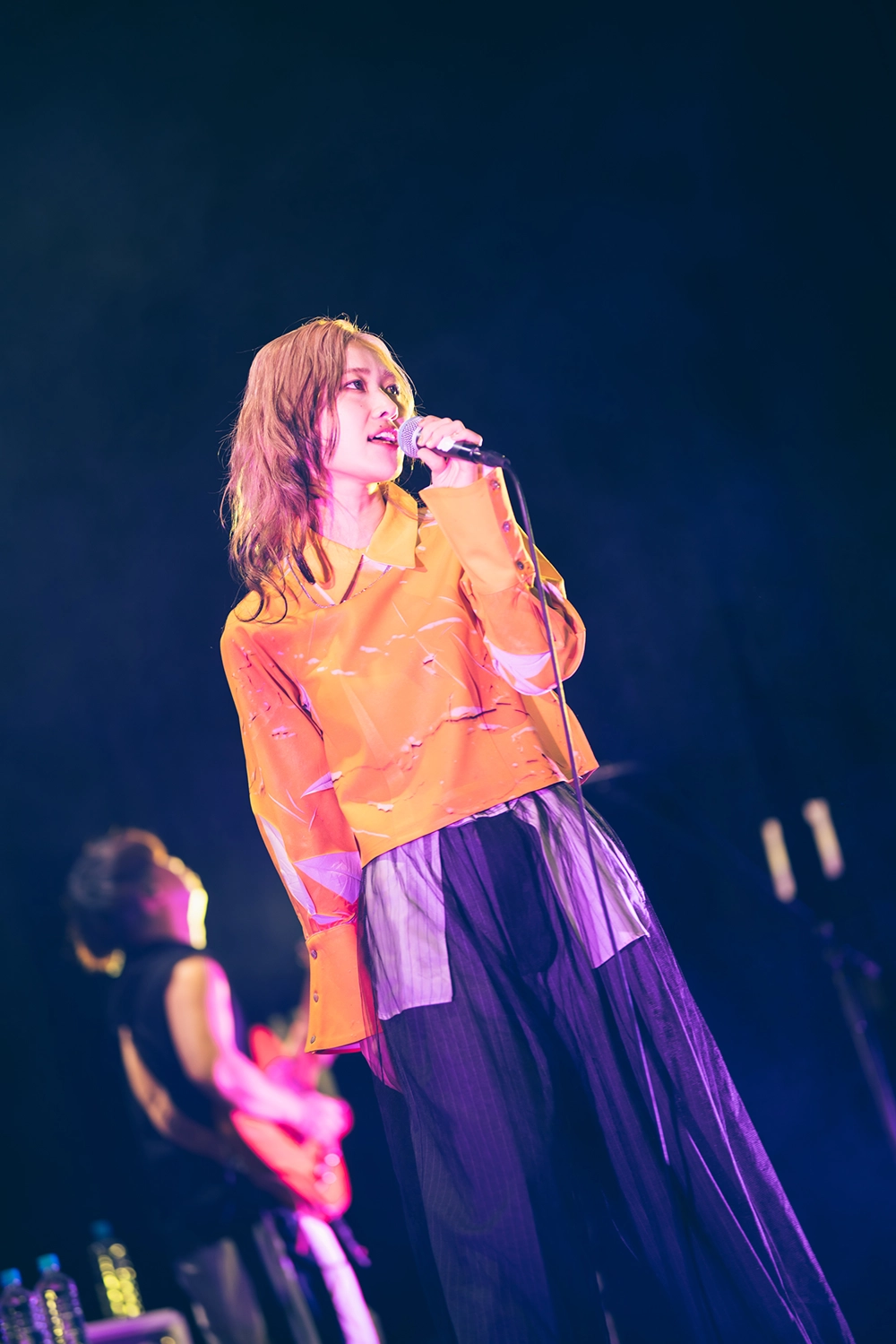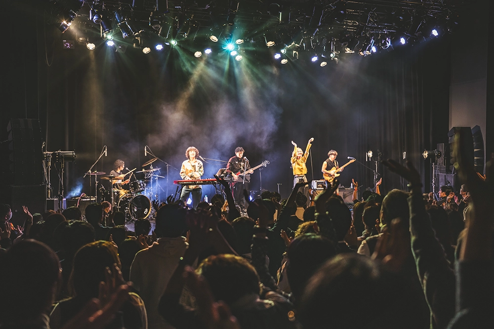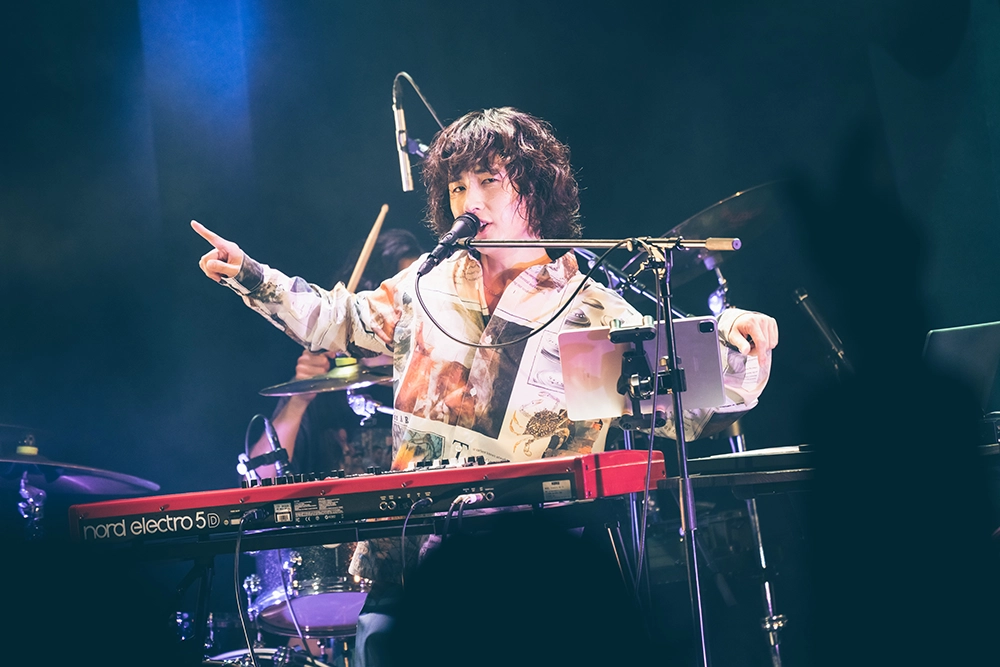 cross-dominanceのスリリングなインプロビゼーションを挟み、ライブは後半戦に突入。「みんな、踊るぞー!」とステージに飛びだしてきたみゆうが「私のルーツ、マイケル・ジャクソンをカバーしました!」と紹介したのは、「Love never felt so good」だ。カッティングギターが牽引するファンキーなビートに乗り、のびのびと歌うみゆう。バンドアンサンブルがどんどん熱を帯びる中、陽介も負けじと「ラストスパートでございます! 自分の気持ちいいノリ方でノッてください!」と前のめりな姿勢で煽っていく。そんな彼のキーボードソロとラップが炸裂する「Sing」、観客がタオルを振って盛り上がった「kiyo」と畳みかけ、会場の一体感はピークを迎えた。