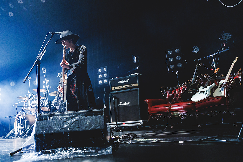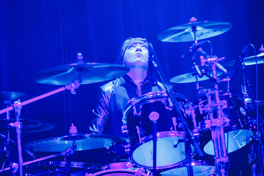 ヒステリックかつアッパーな「quo vadis」やアグレッシブな「re make」などでさらに場内のボルテージを引き上げた後、ステージが完全な暗転状態になり、漆黒の中に眞呼の姿がおぼろに浮かび上がるというシチュエーションで「蟻塚」が届けられた。このアプローチには、心の底から驚かされた。仕事柄もう長年に亘って様々なライブを体感してきているが、こういう情景は見たことがないし、真っ暗闇の中で演奏できる楽器陣は「凄い!」の一言に尽きる。特異な手法が生み出す“闇力”は圧倒的で、全てのオーディエンスが深く惹き込まれていることがはっきりと伝わってきた。