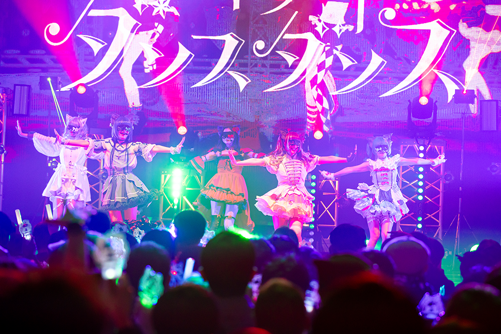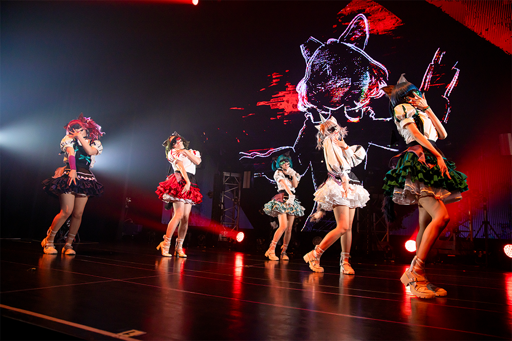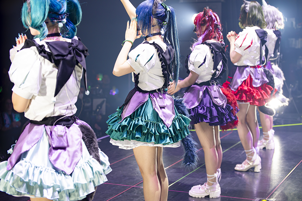 その後もCHINOとVITTEによる「幻想アンヴェール」や、「物換星移カタルシス」を歌い終えたCHINOとRARAが冒頭のダンスに参加したMYUとNEFFYによる「誘惑ノンフィクション」など彼女たちの物語が万華鏡のごとくきらびやかに展開し、メンバー全員が集合すると初のオリジナル曲「残響ヴァンデラー」を披露する。観客も熱いコールを飛ばし、会場にはエネルギッシュな一体感が生まれた。