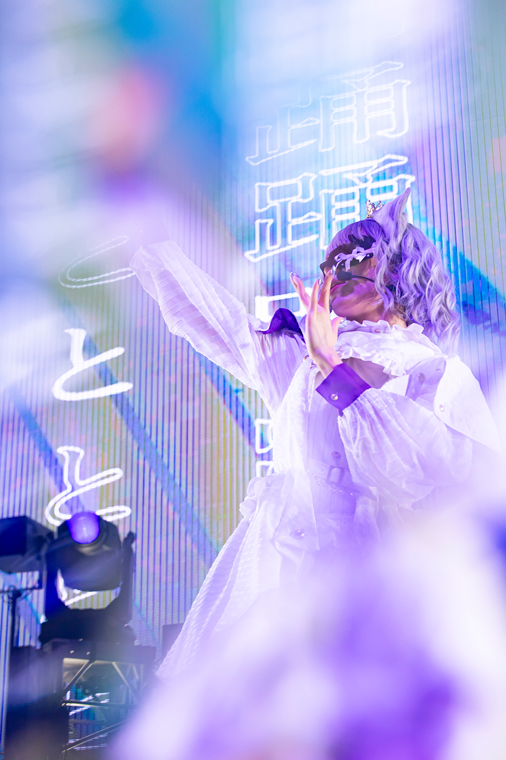 「熱愛フローズン」ではモニターに3Dモデルである“アバター”の姿が映し出され、画面内外でパフォーマンスをユニゾンさせる。アウトロがテンポアップしてそのまま「超常現象ダンスダンス」につなぐと、フロアもユーモラスでキュートなダンスや色鮮やかなレーザーに触発され、存分にコールを飛ばした。