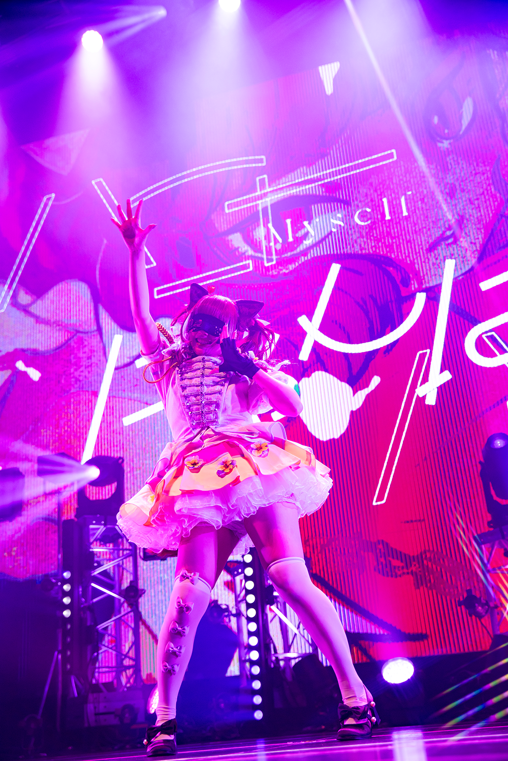 VITTEは「ピカピカキャンディラブイズム」「狂愛レゾナンス」「βlack Swan」と、ファンが見守ってきた幼い頃の自分から立派なプリンセスに成長するまでの過程を描く。ゆえに3曲で異なる表情を見せ、多彩な感情表現で会場を翻弄した。MYUは「渇愛論」「変異体」「Mute Beat」と情熱をテーマに、熱い気持ちや愛情を届けることに力を注ぐ。グラマラスなボーカルが歌詞世界を引き立て、カラフルな5人のパレードを堂々と締めくくった。