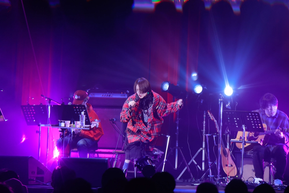 「私が中学に入るくらいの頃にマイファミリーが解散したんですけど、母(の見た目)がベッド・ミドラーに似てて。母の和子は音痴で音域も狭くて、声がしゃがれてるんですけど、研ナオコさんとベッド・ミドラー『The Rose』だけはいい味で歌ってて」と語られた「The Rose」では、皆川がピアノとオルガンを両手で弾き、Sheigkuniと設楽がともにアコギを奏でながら、男性4声のコーラスが重なり、場内はまるで教会のような神秘的なムードに包まれていった。そして、「海を見ていた午後」(1974年※24日のみ演奏)、「ダンデライオン〜遅咲きのタンポポ」(1983年/原田知世※25日のみ演奏)というユーミンワークスを経て、今から10年前に参加した銀杏BOYZのトリビュートアルバム制作時に「ミックスを聞いてた娘(当時、幼稚園児)が、ラーメン臭くて可愛そうと泣いてた」と笑っていたロックバラード「なんとなく僕たちは大人になるんだ」(2005年)では、場内の照明が落とされ、印象的なオルガンのフレーズの中をフォーキーながらもスケールの大きい、ゆったりとしたメロディーが奏でられ、観客は深みのある世界にどっぷりと引き込まれていった。これは、おそらく意図的ではないのだろうが、母の和子から娘の裕子、母になった裕子から娘へという家族の歴史も感じるブロックだった。(ちなみに1日目に母親が、2日目に娘が観覧に訪れていたそう)