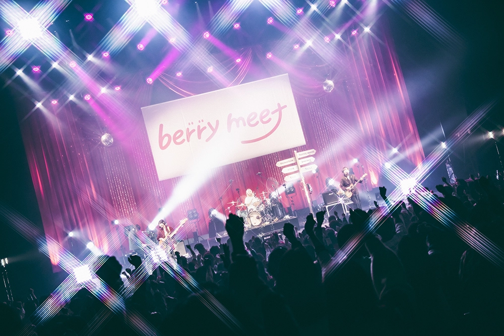ピアノのメロディに乗せて、たくが一人で語る、これまでの人生とberry meetの物語が胸にしみ入る。生きることって幸せだなと思えるような音楽を、これからも真摯に届けていきます――そう言って歌った「今夜だけは」は、バンドをここまで連れて来てくれた、ファンへの感謝の贈り物だ。残すは2曲、このツアーを通して磨きをかけた、全員参加のコーラスと手拍子と共に「純情」を、きらきら回るミラーボールの下で「片想いトリップ」を、笑顔と元気いっぱいで駆け抜ける。ライブ前の緊張感はどこへやら、ホール内の空気はあたたかい一体感でいっぱいだ。