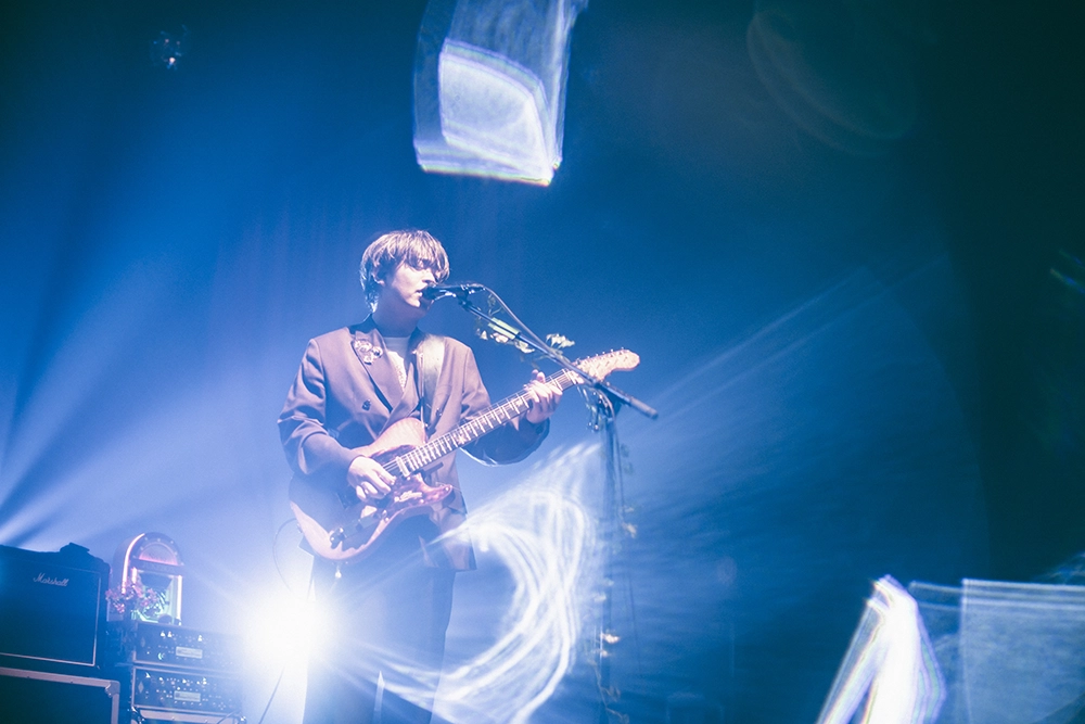 たく(Vo,Gt)の元気いっぱいの第一声から始まったライブは、1曲目「旅路」からフルパワーで全力疾走。たくのスーツ姿を筆頭に、3人ともばっちりお洒落に決めて気合は十分。いこたん(Dr,Cho)の「最高の日にしようね!」という掛け声から「脳内告白」「グッバイ」へ、全員参加のクラップと手振りでぐいぐい飛ばす。両足をぐっと踏ん張って太いビートをはじきだす、たなかり(Ba)の安定感も抜群。今日でツアーは10本目、バンドとしての成長は明らかだ。