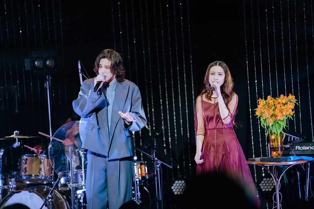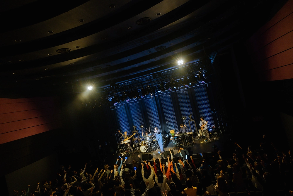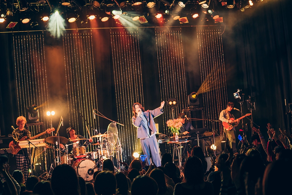 曲調ががらりと変わり、「Flower」から「ナイトサーカス」へ。4人編成のバンドが奏でるファンキー&ダンサブルなグルーヴに乗り、軽くステップを踏みながらのびのび歌う。手を胸に当てる、指先を天にかざす、顔を横に向ける、観客に視線を投げる。ちょっとした動きに役者らしい品を感じる、なんとも魅力的なパフォーマンス。
