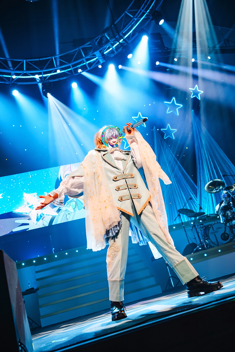 幕間映像「実写版すたぽら 凍てつく棺の祝福-サプライズ-」の後編が放映された後は、挑発的なステージを繰り広げた。“Orionメドレー”では「BUG CODE」を皮切りに「Stellar Jack」や「ミッドナイトカーニバル」などダーク寄りの楽曲を様々な編成で届ける。包容力と爽快感に満ちた「花束のような毎日を」でメドレーを締めくくると、チェアを用いた演劇調のパフォーマンスが目を見張る「U」、ヘビーなバンドサウンドとラップがスリリングに混ざり合う「Mad Verse」、こったろが作詞作曲、Reluが編曲を務める「Lovelight」とパワフルに駆け抜けた。