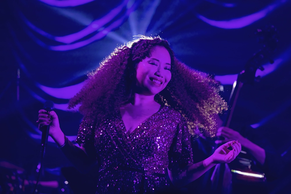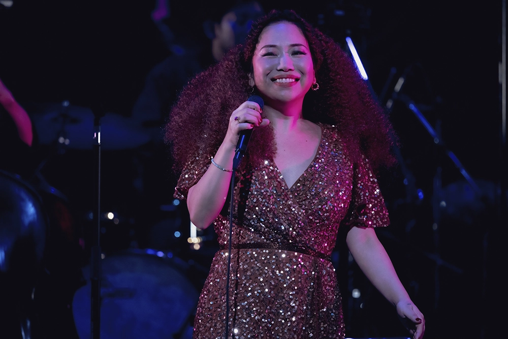 さらに心地よいスウィング感のなかでボーカルと管楽器の掛け合いが繰り広げられた「極楽鳥 〜Bird of Paradise〜」を披露し、「『orange pekoe with the Big Band Party Night FINAL!!!』へようこそ! みなさん、今日はビッグバンド“もりもり”です。どうぞ最後までついてきてください!」と挨拶。スキャットを交えた歌、管楽器隊のソロ演奏がゴージャズな雰囲気を生み出した「スウィート・ムービー」、ラテンジャズのエッセンスをたっぷりと散りばめた「Wonderful Soul」を続けて演奏し、orange pekoeの奥深く、色彩豊かな音楽の世界を描き出した。