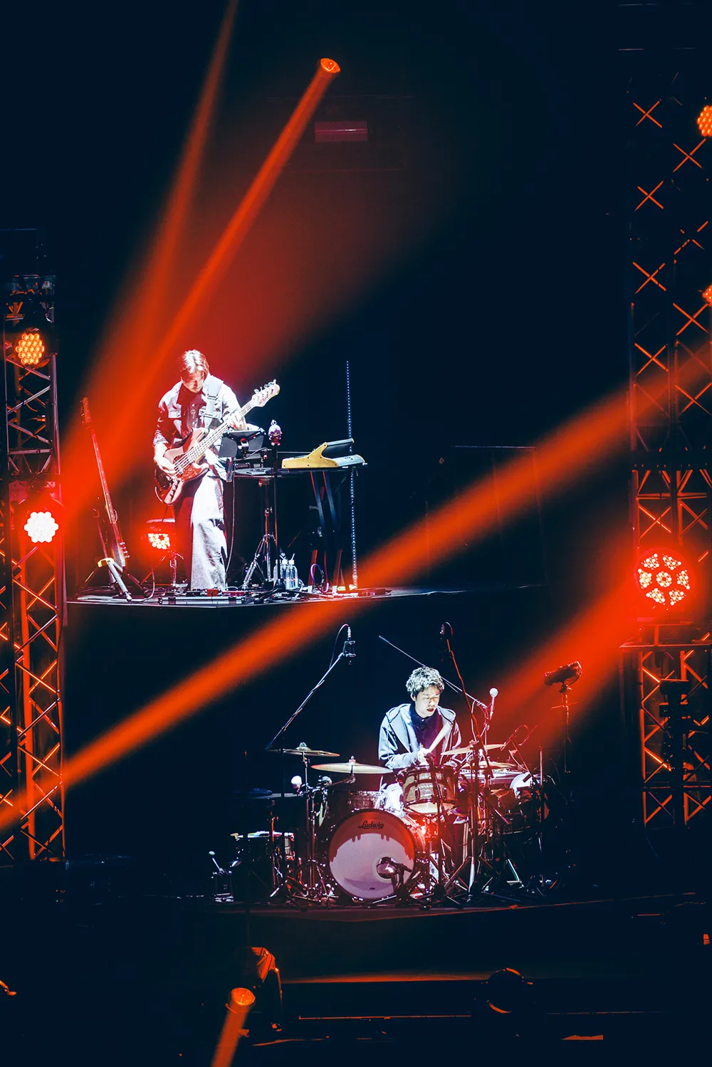 その後も「点灯」「追憶」と『神椿市建設中。』の世界と心情を音楽で立ちのぼらせて観客一人ひとりを包み込み、「歌姫」から新たな世界へ踏み出していくような爽快感を作り出すと、バンドメンバー紹介ののちに幸祜が「このぴあアリーナにみんなの声をもっと響かせてください!」と呼び掛け、「同盟」で本編を締めくくる。全力でコールやシンガロングを飛ばす観客と、観客から受け取ったエネルギーを歌に乗せてポジティブに邁進する5人の姿は、曲名どおりの強い結束を感じさせた。