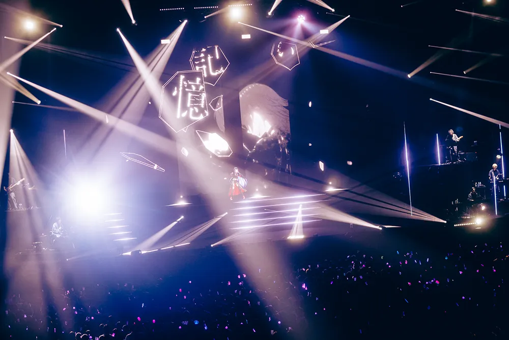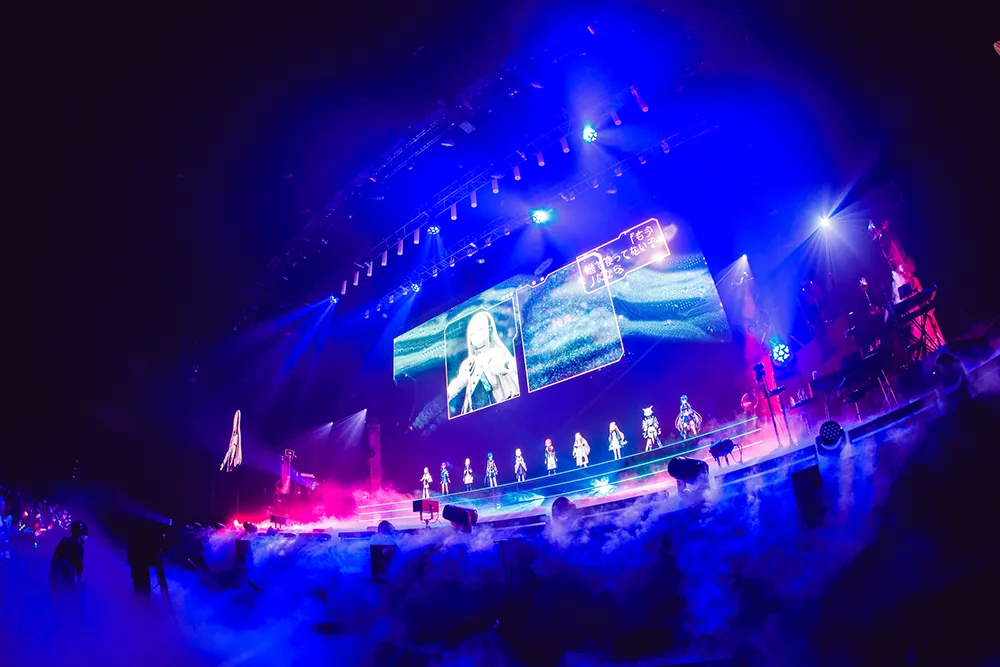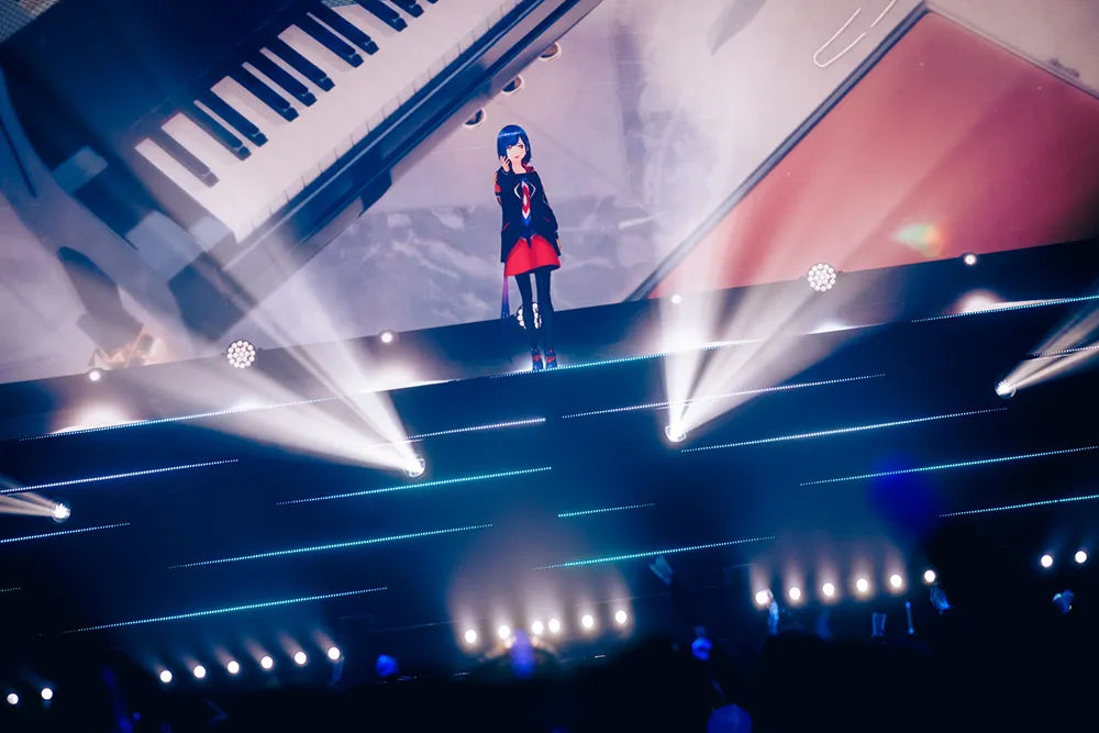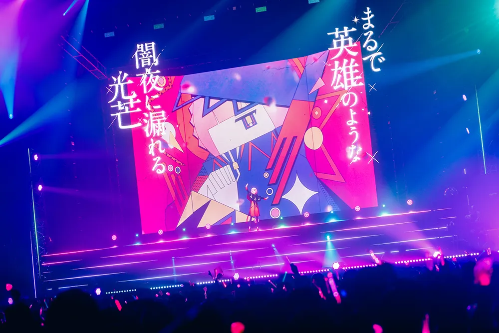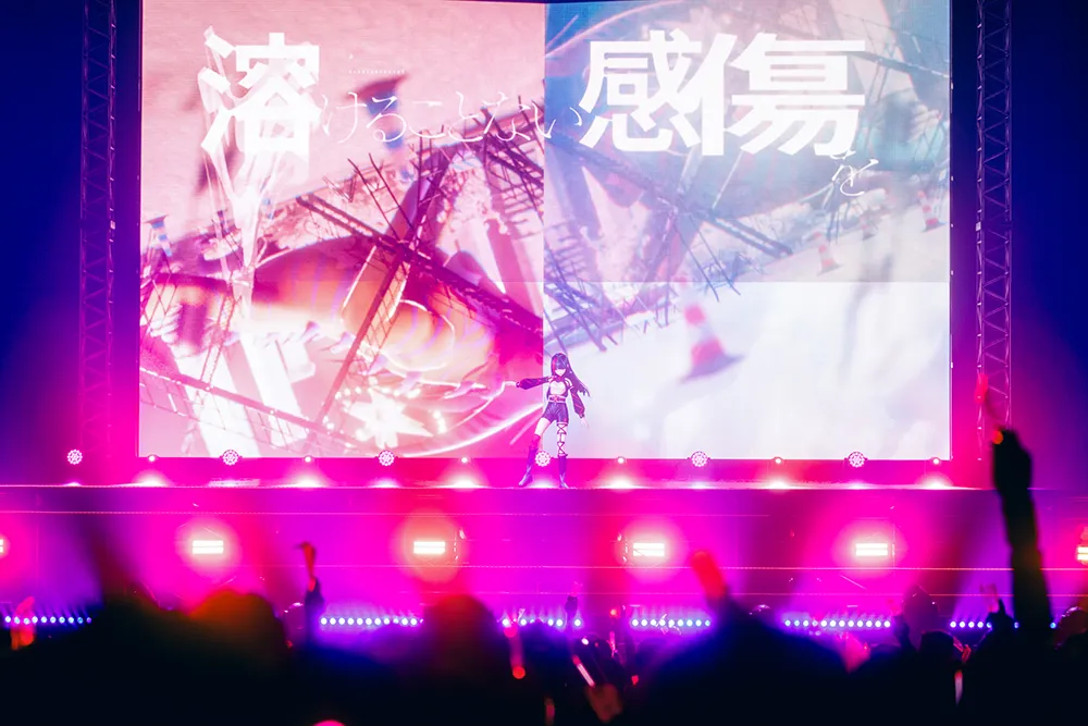 MCで和気あいあいとした空気のなか観客とコミュニケーションを取った後は、エモーション漲(みなぎ)る「愛詩」からアッパーかつ遊び心の効いた「玩具」へと颯爽とつなぎ、『神椿市建設中。』の第9話エンディングテーマに使用された「欲望」、感傷的なボーカルとハーモニーが胸に迫るロックバラード「再会」と、様々な物語を交錯させる。ここから彼女たちを取り巻く仮想世界と現実世界、創作とリアルはさらに複雑に絡み合っていった。