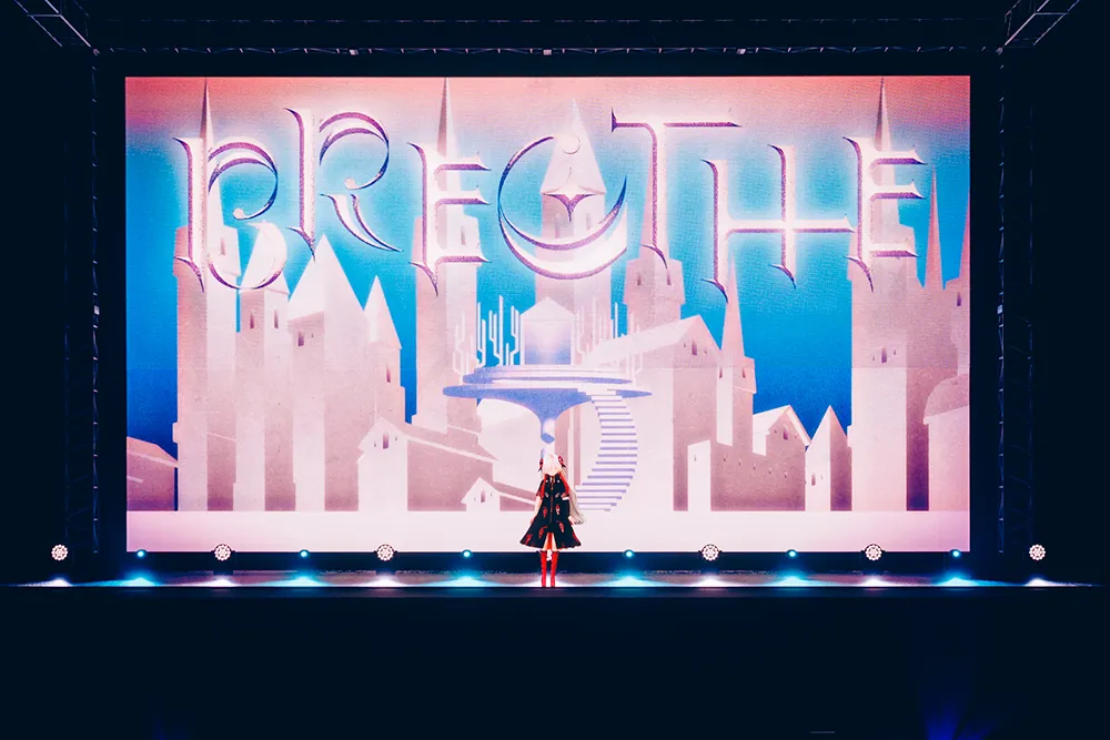 春猿火はブラックミュージックのテイストを含んだ「距離。」を艶やかに歌い上げ、理芽は切なさと清涼感を纏ったボーカルで「閃光だった」を青々と彩る。バレエを模した優雅なダンスを披露したヰ世界情緒は強い気持ちを声に込めて「BREATHE」を届け、幸祜はドラマチックな展開の「シャングリラ」を情感豊かな歌声で巧みにドライブした。花譜はウィスパーボイスで高揚感を解き放つように「ひとえに壊れて」を歌唱し、会場をロマンチシズムで潤わせる。5人それぞれがひとつの物語を描く様子は、折り重なる花びらのように可憐だった。