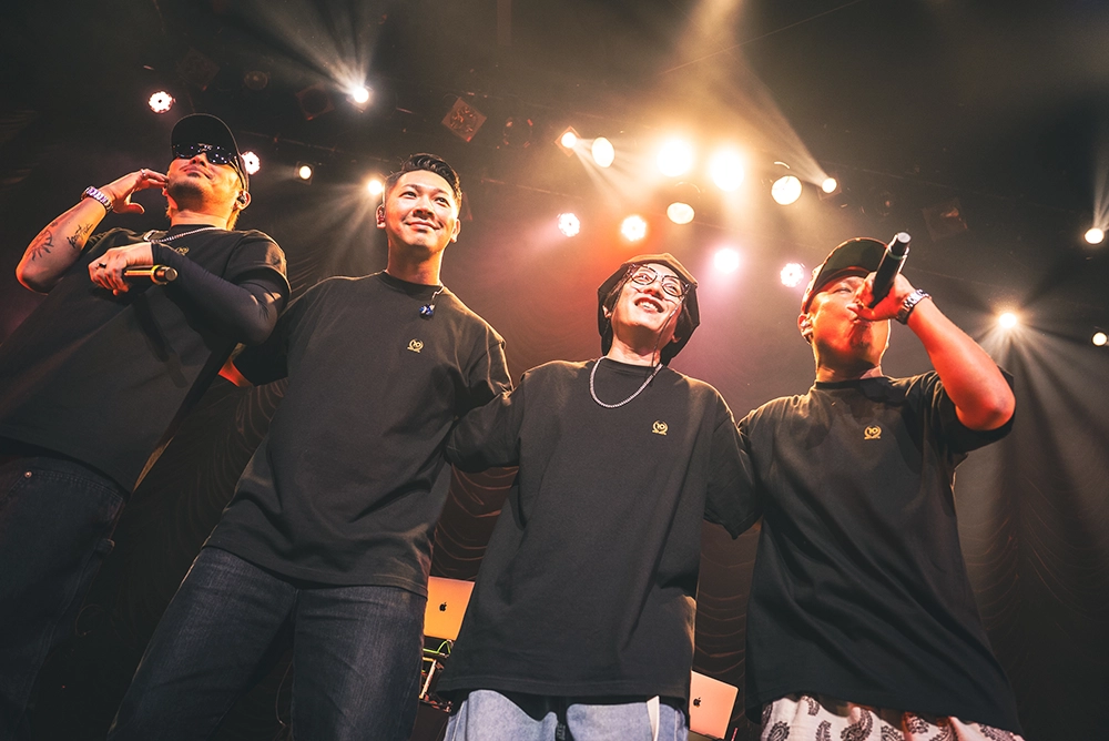 ゆったりとしんみりと心に沁み入る名曲「ライオン」「Good Luck!」を歌い終えて、Roverが今日を含めてあと2回のライブでバックDJを離れるMANA-Bにマイクを託す。珍しく感極まる様子を見せながら、大阪城ホールや甲子園球場など夢の舞台を振り返り、「僕はバックDJ界で一番幸せな男だと思っています」と語るMANA-B。そしてRoverが「MANA-Bのために歌いましょう」と呼びかけ、4人で肩を組んで歌う「アイカタ」。機材トラブルでイントロを何度かやり直したのも、むしろいい思い出だ。今日だって一緒に同じ夢を生きてる。ベリーグッドマンのエールソングは、いくつもの別れと出会いを繰り返して説得力を増していく。